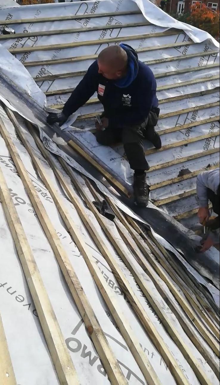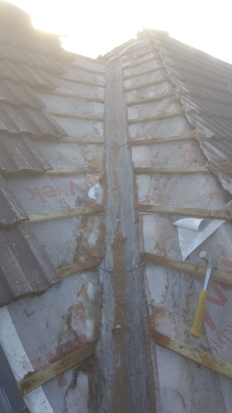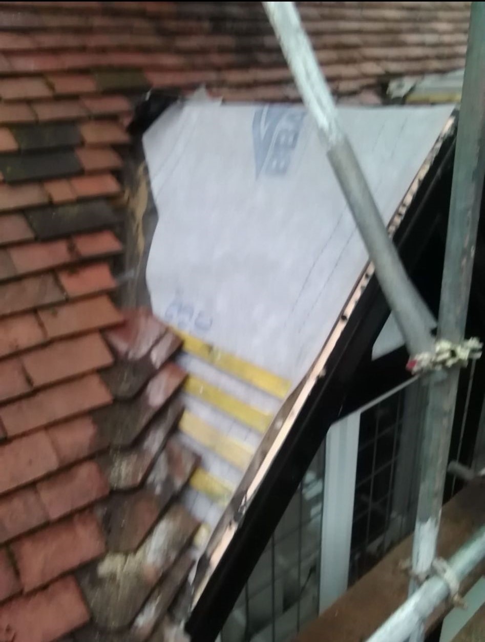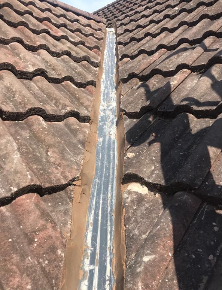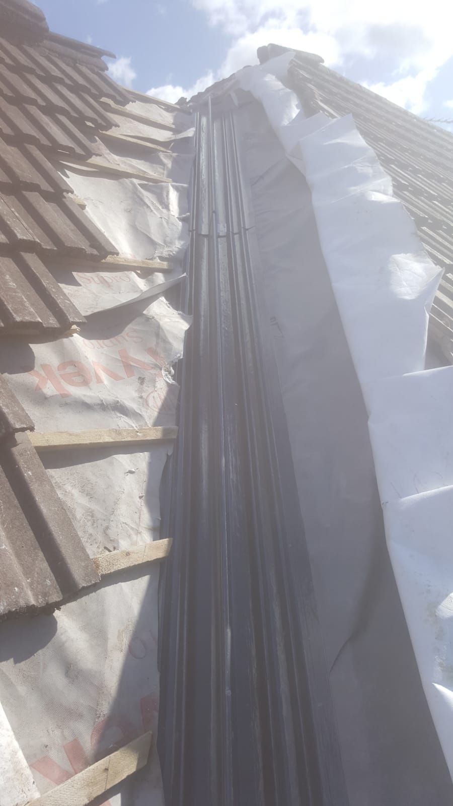 Old lead valley removed and a new maintenance-free dry valley system supplied and fitted with felt and batten replacement on the main roof.