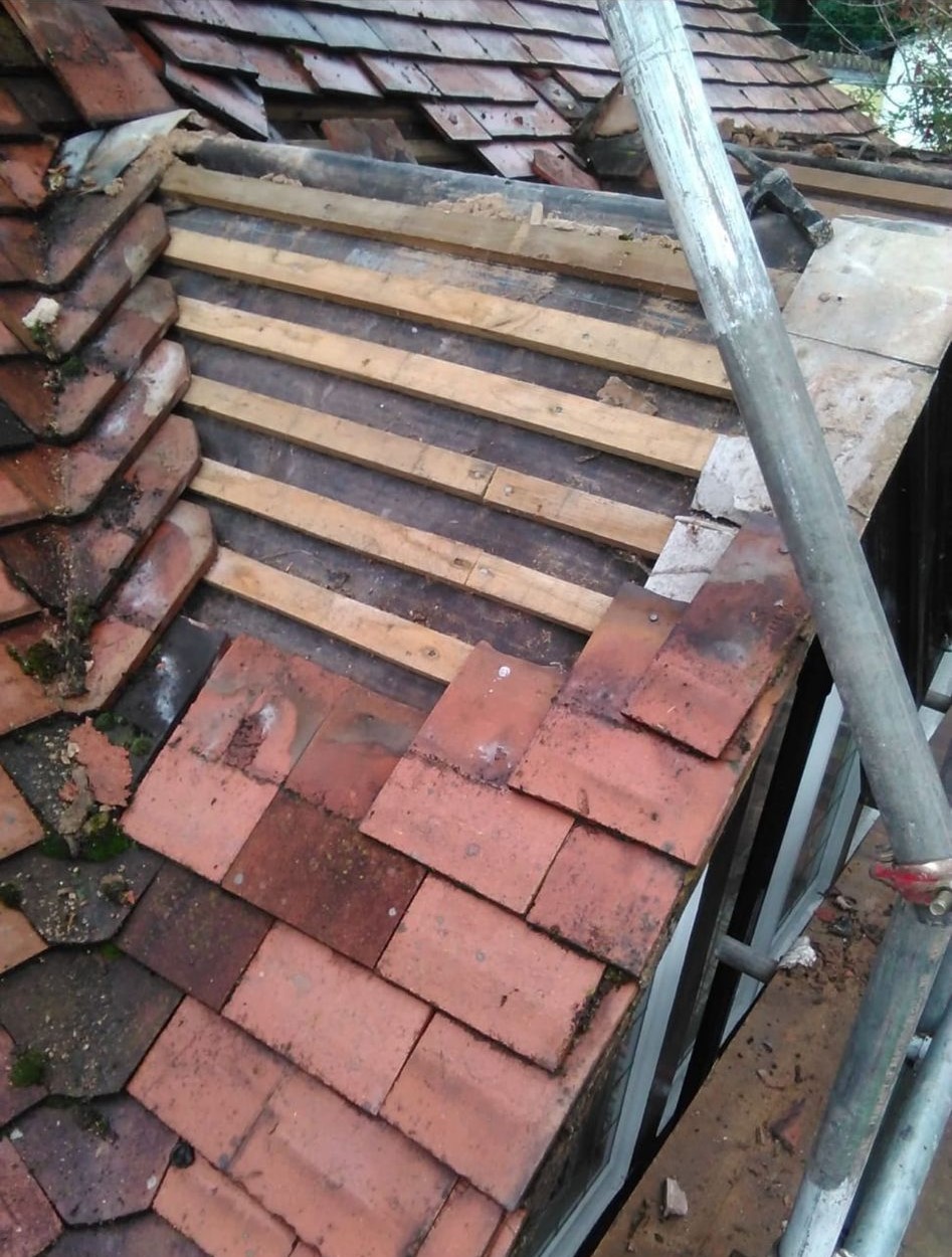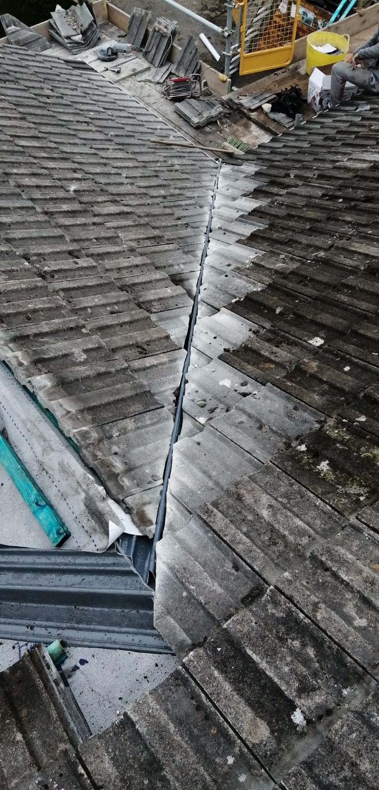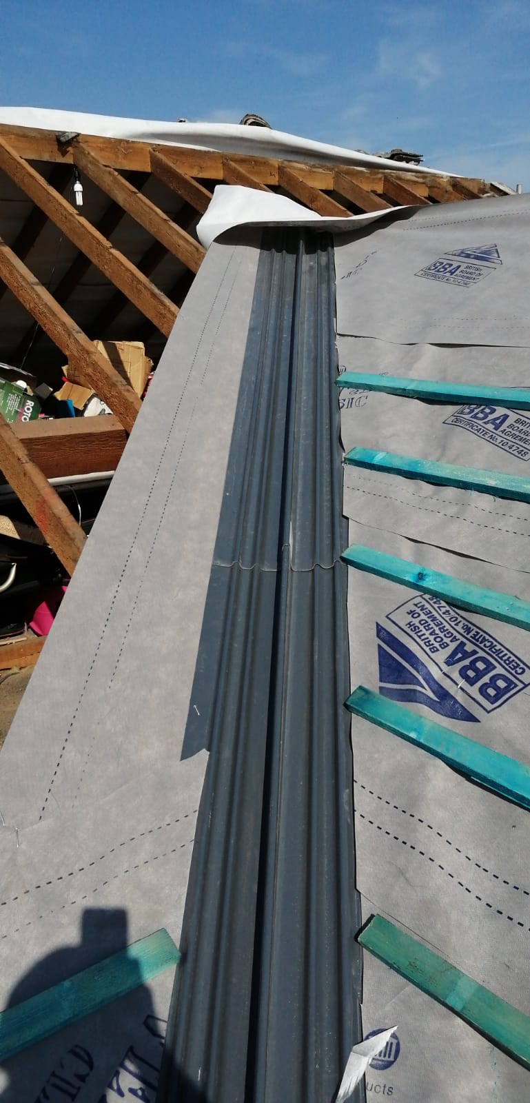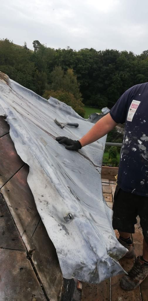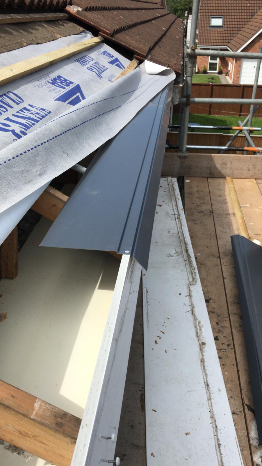 Old lead valley removed and a new maintenance-free dry valley system supplied and fitted with felt and batten replacement on the main roof.