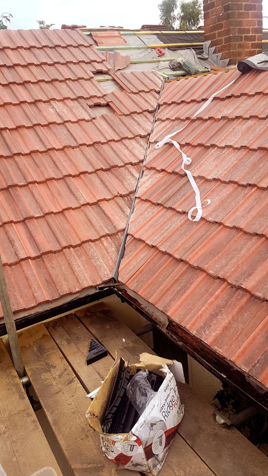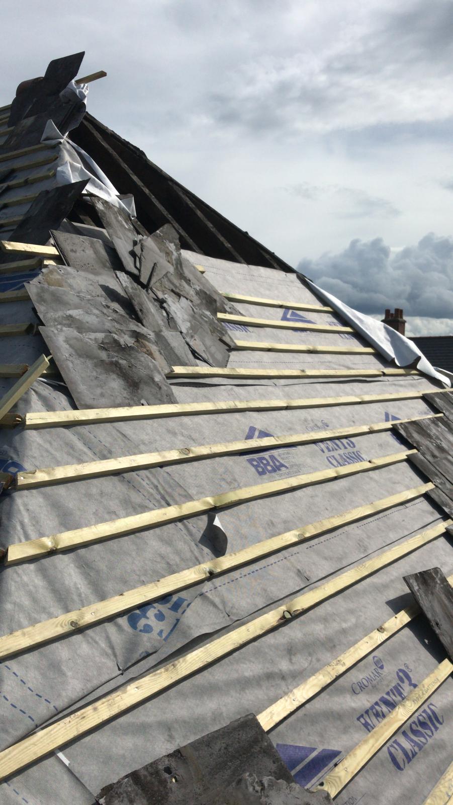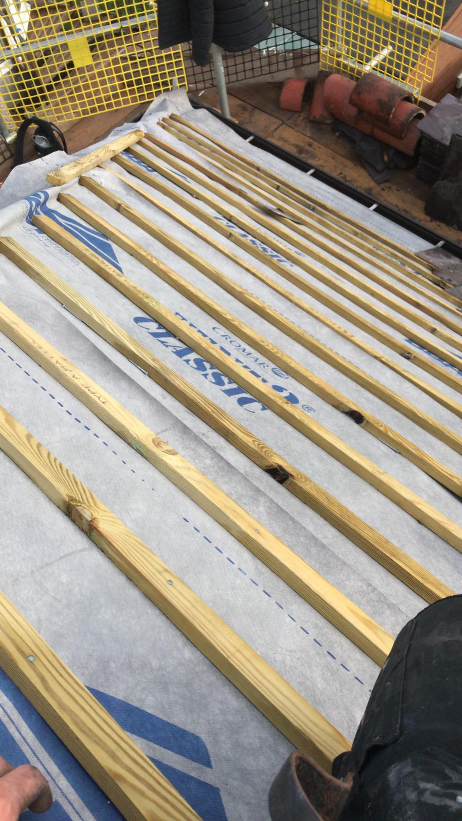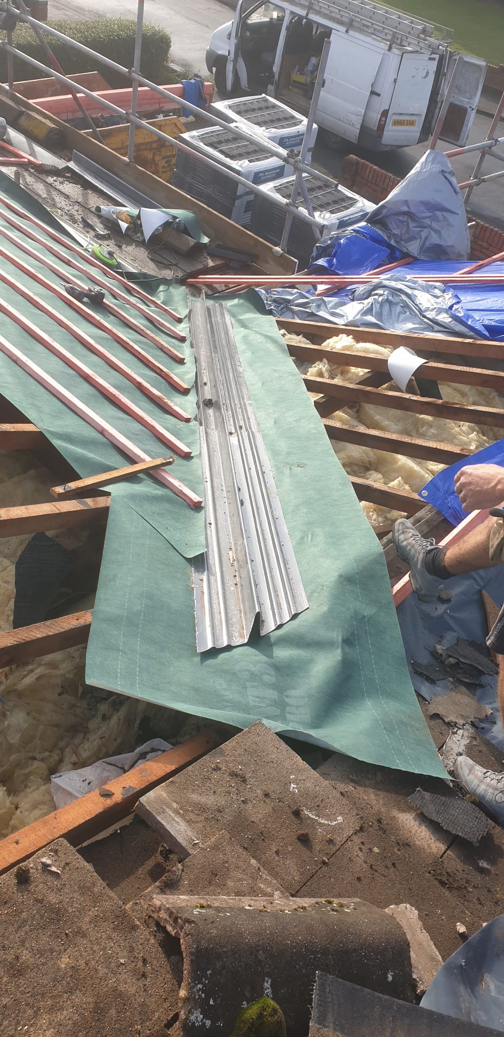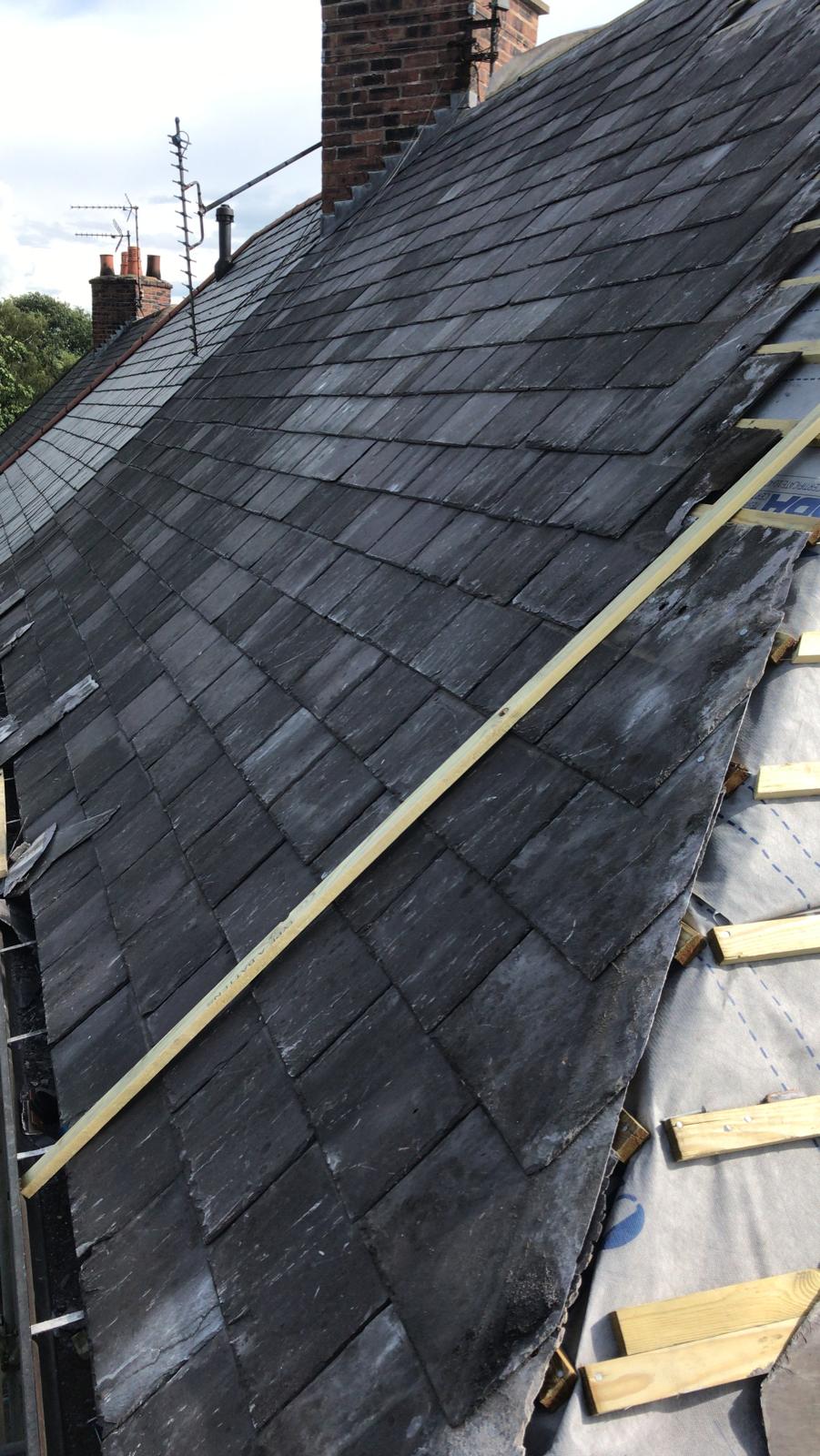 Old lead valley removed and a new maintenance-free dry valley system supplied and fitted with felt and batten replacement on the main roof.