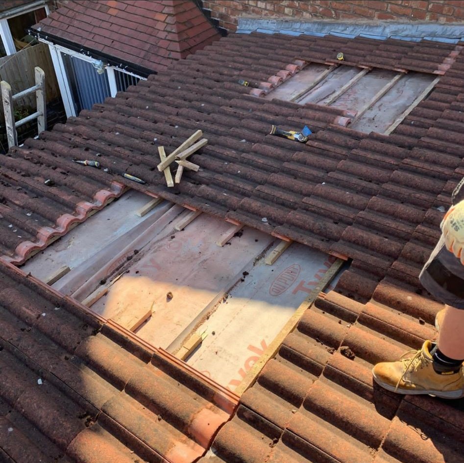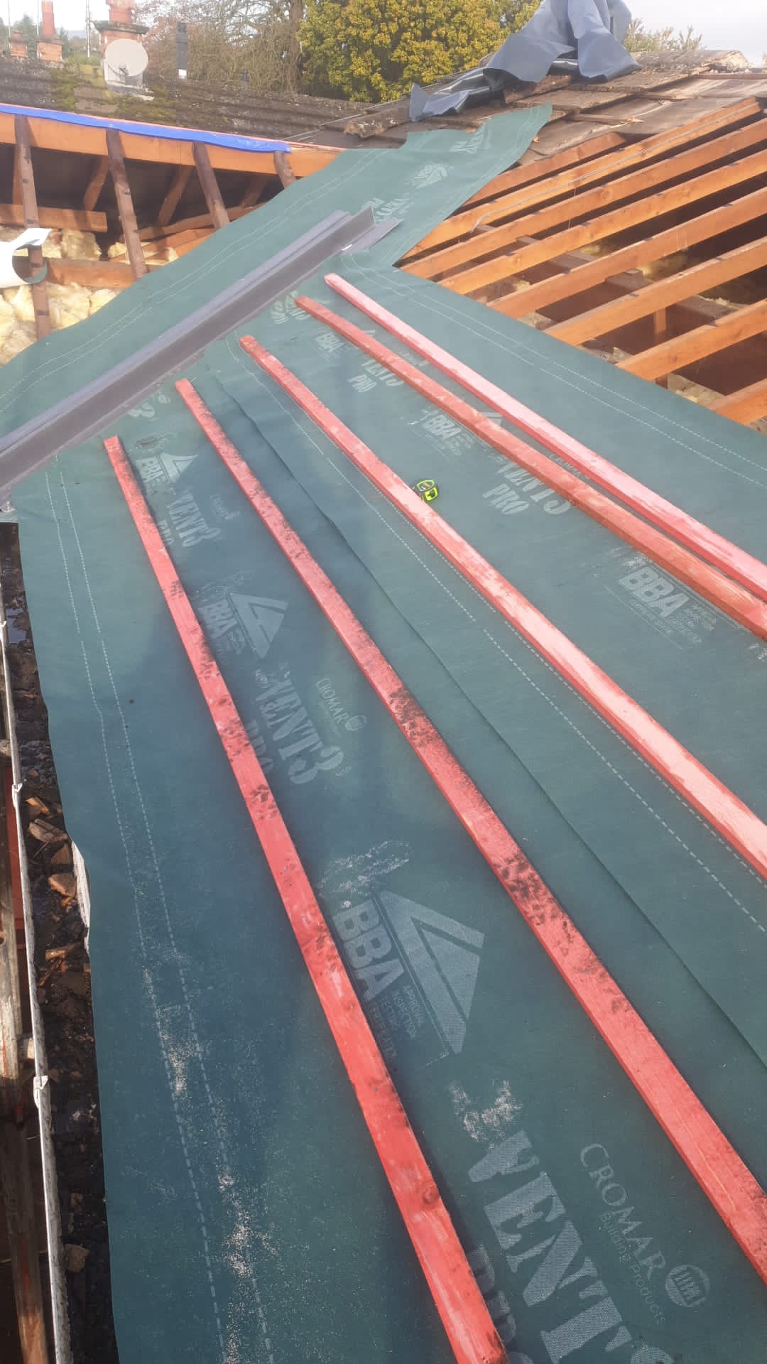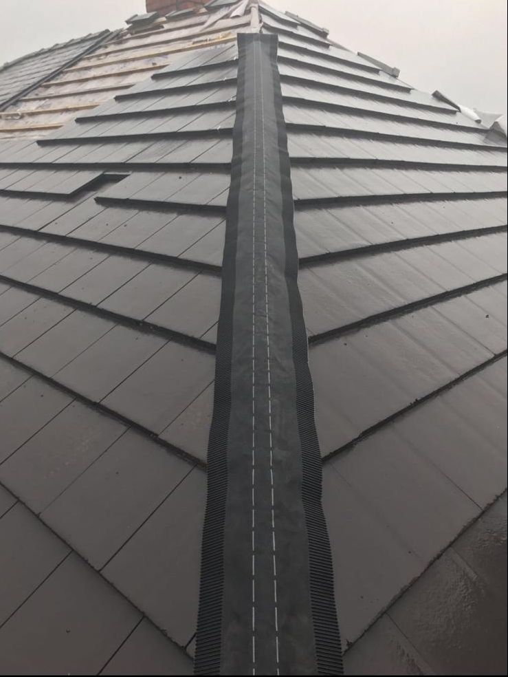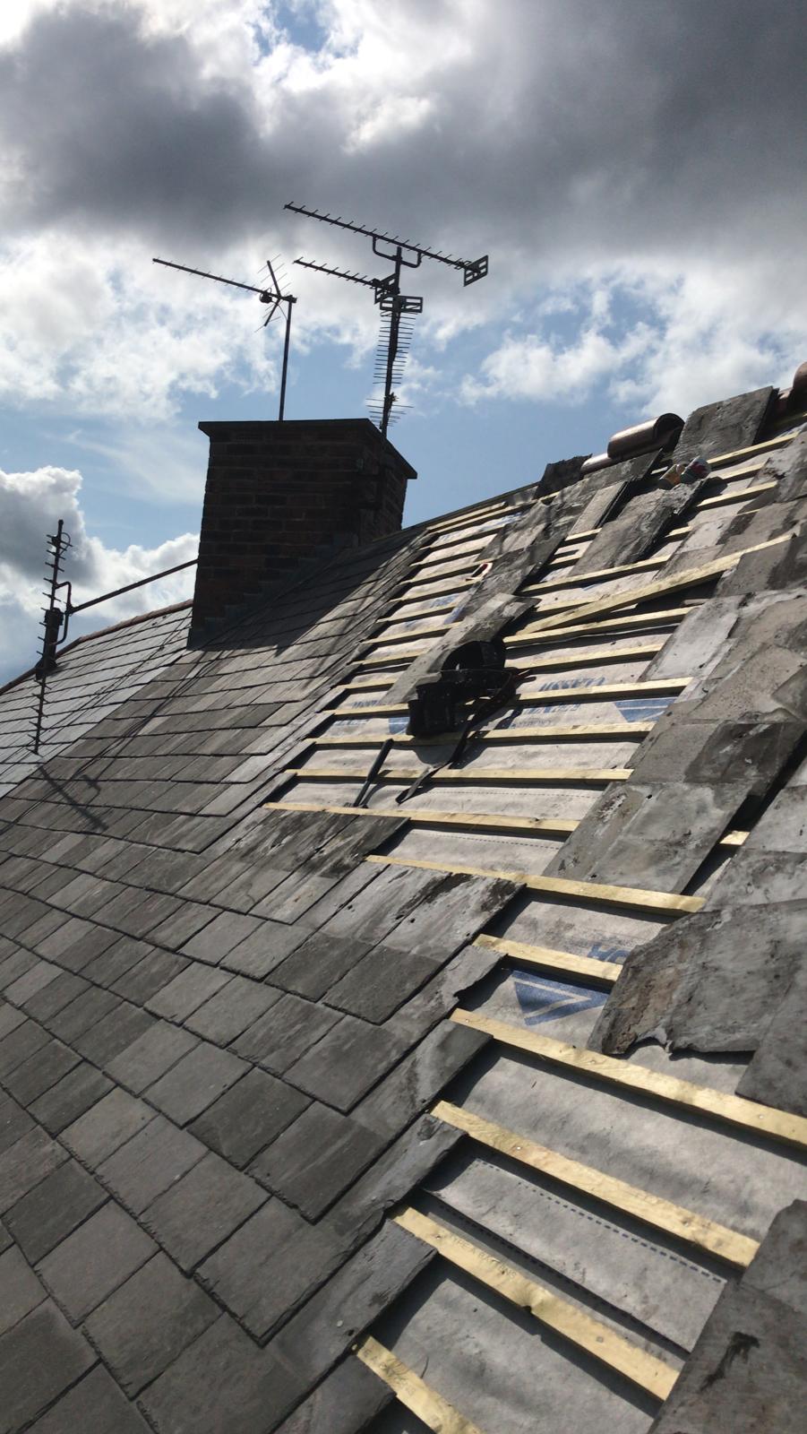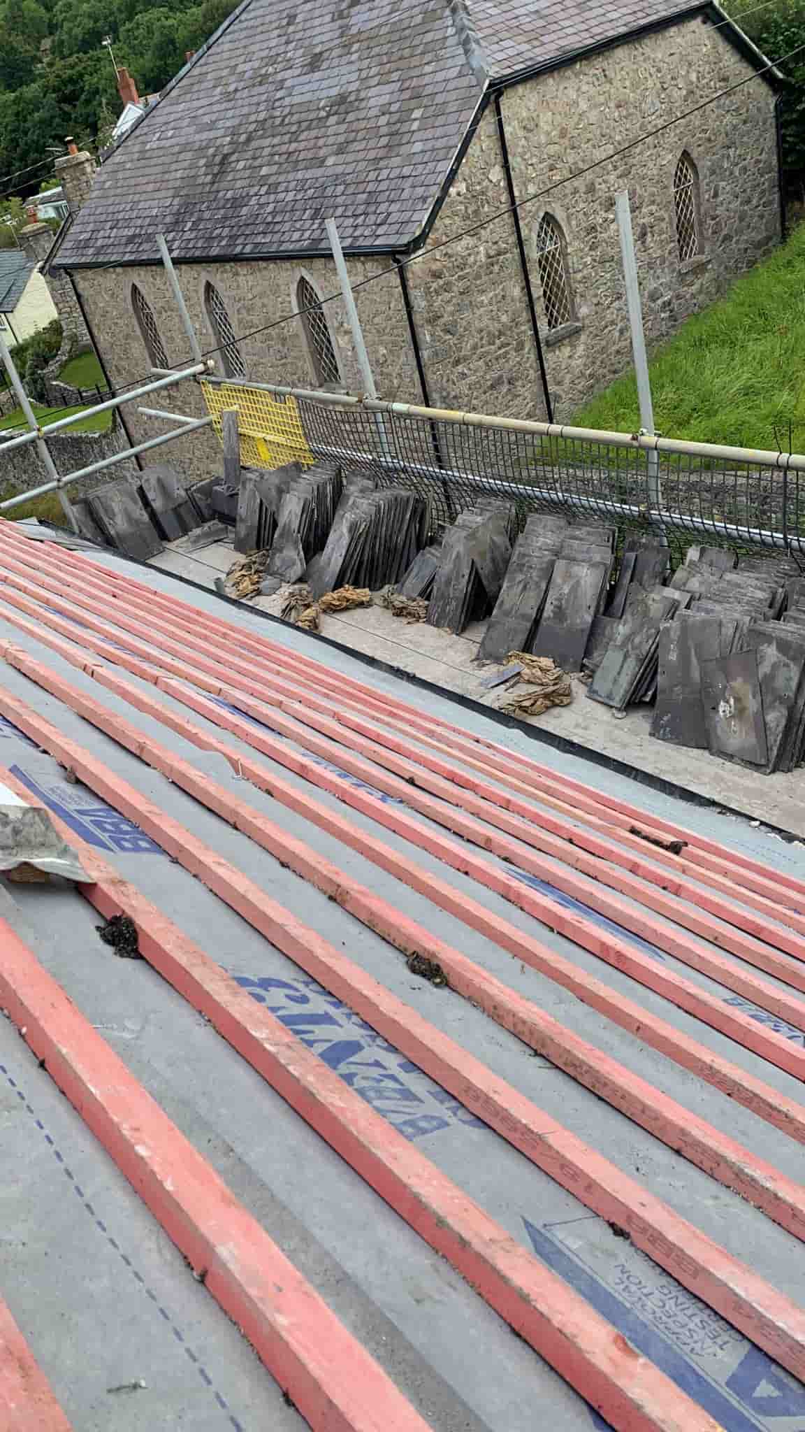 Old lead valley removed and a new maintenance-free dry valley system supplied and fitted with felt and batten replacement on the main roof.