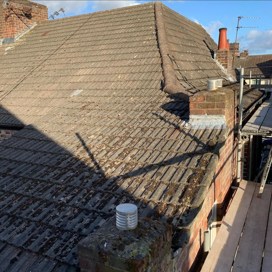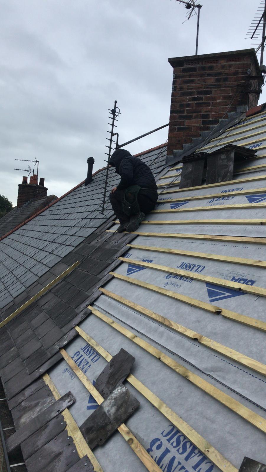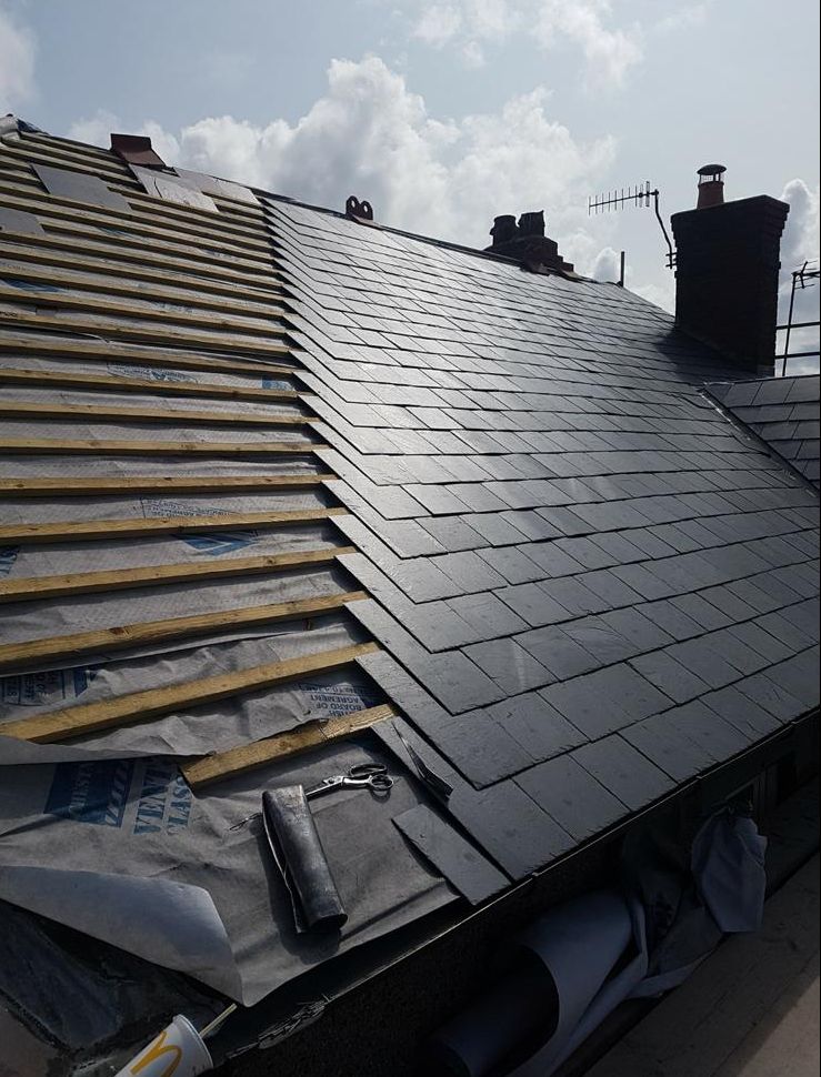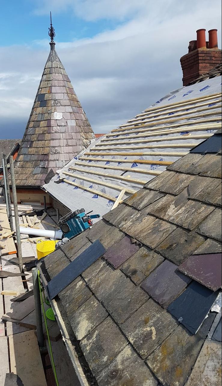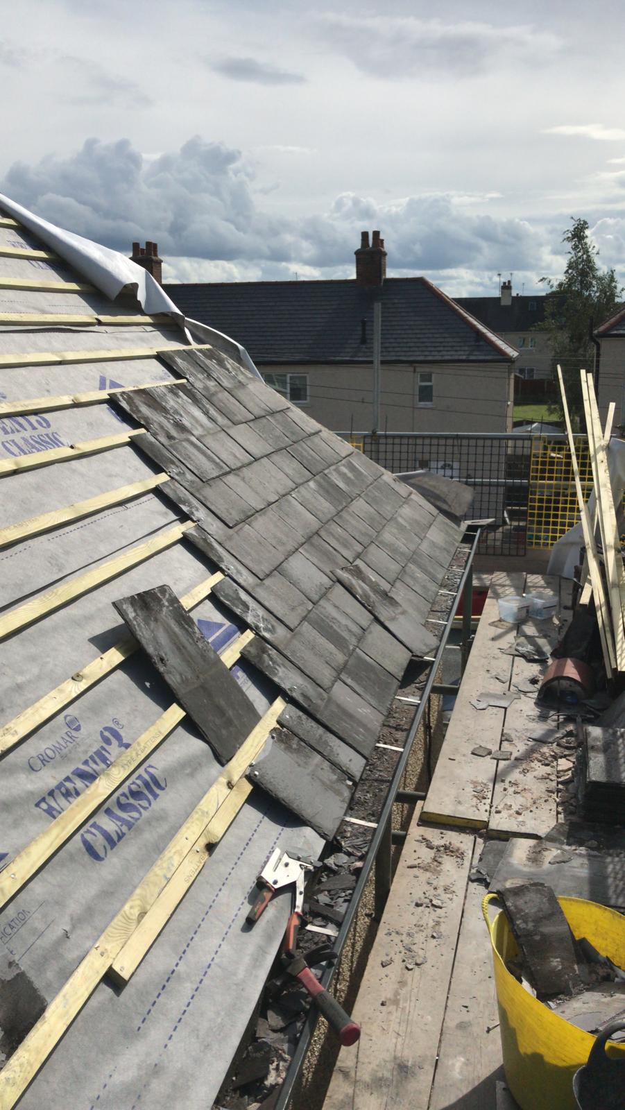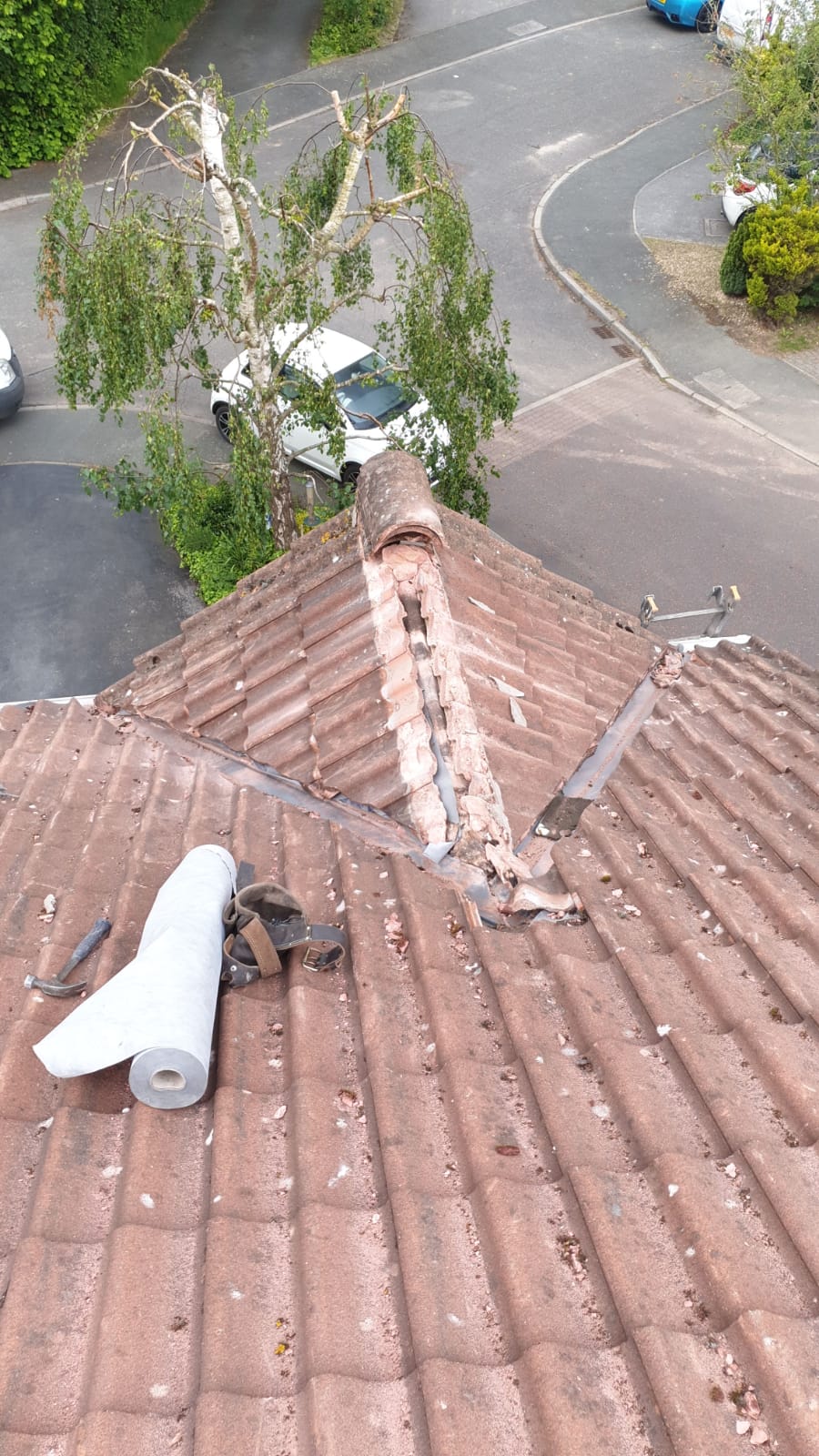 Old lead valley removed and a new maintenance-free dry valley system supplied and fitted with felt and batten replacement on the main roof.