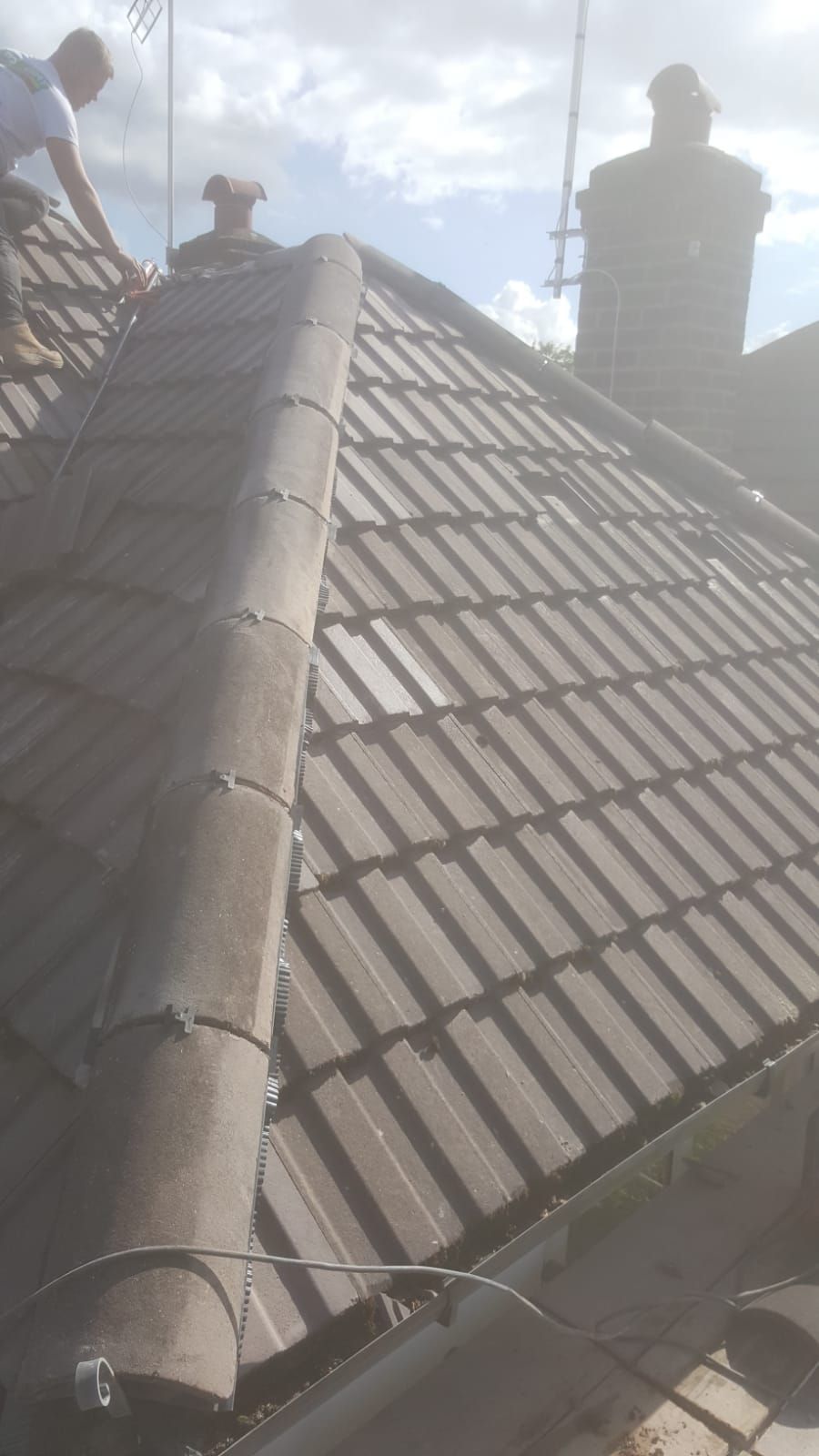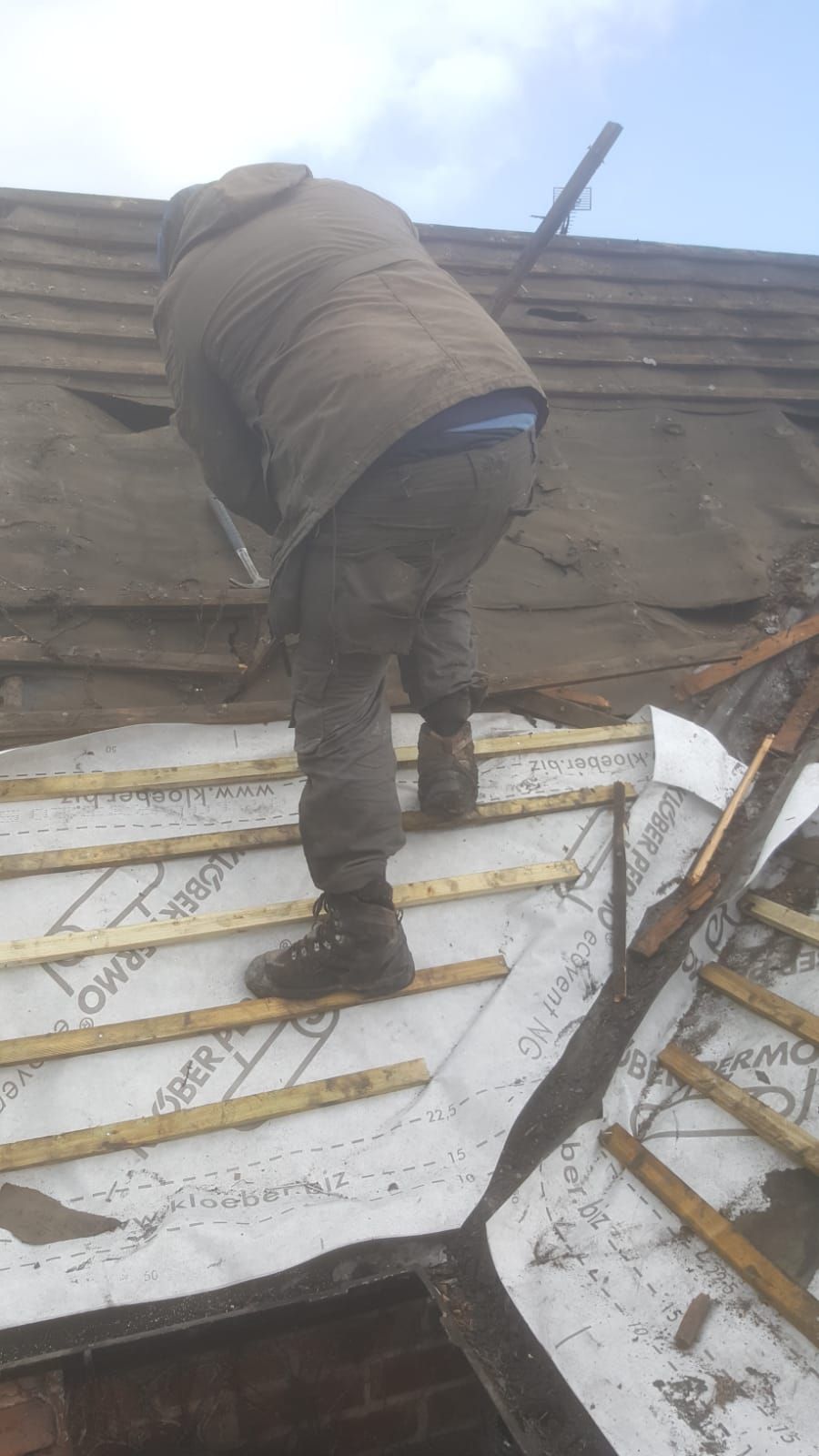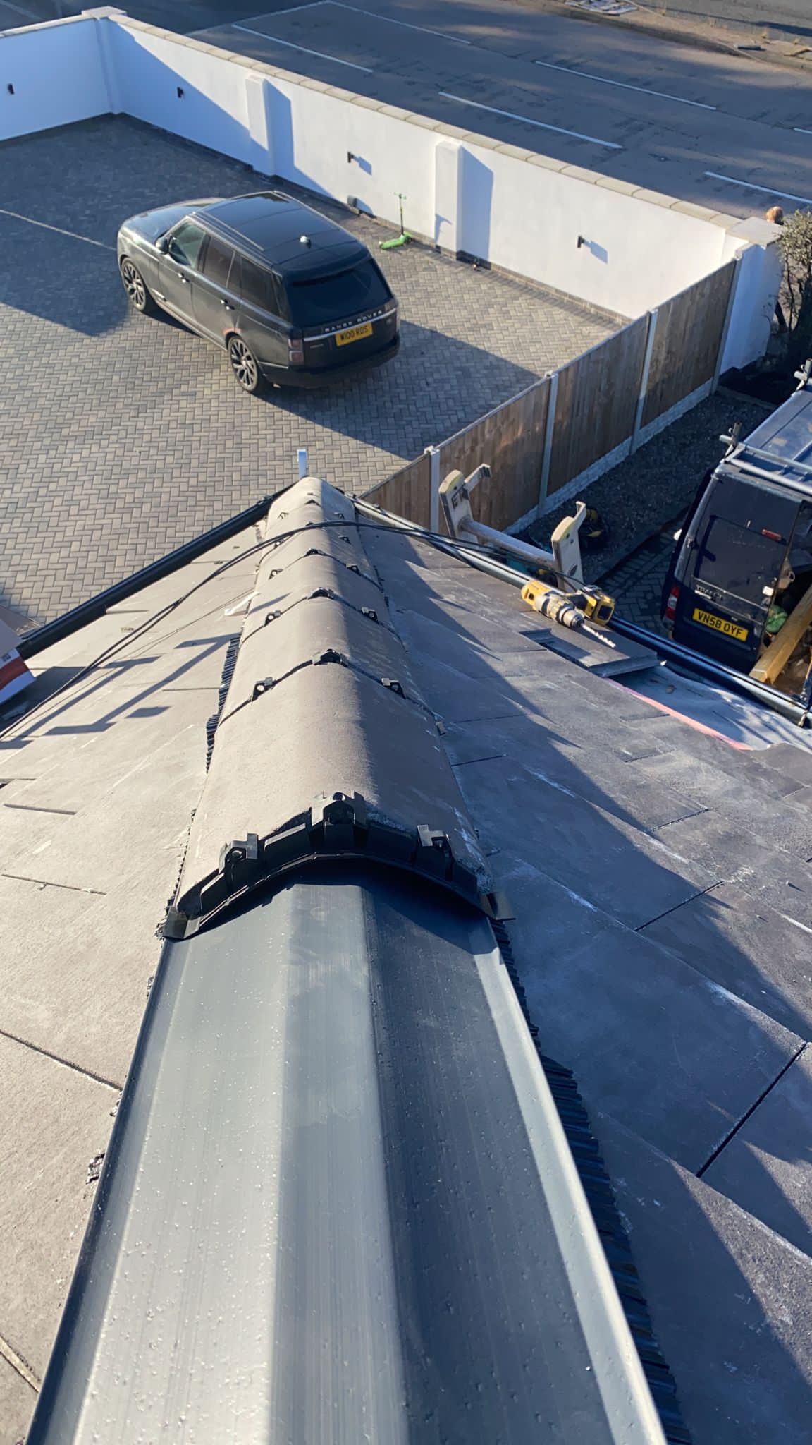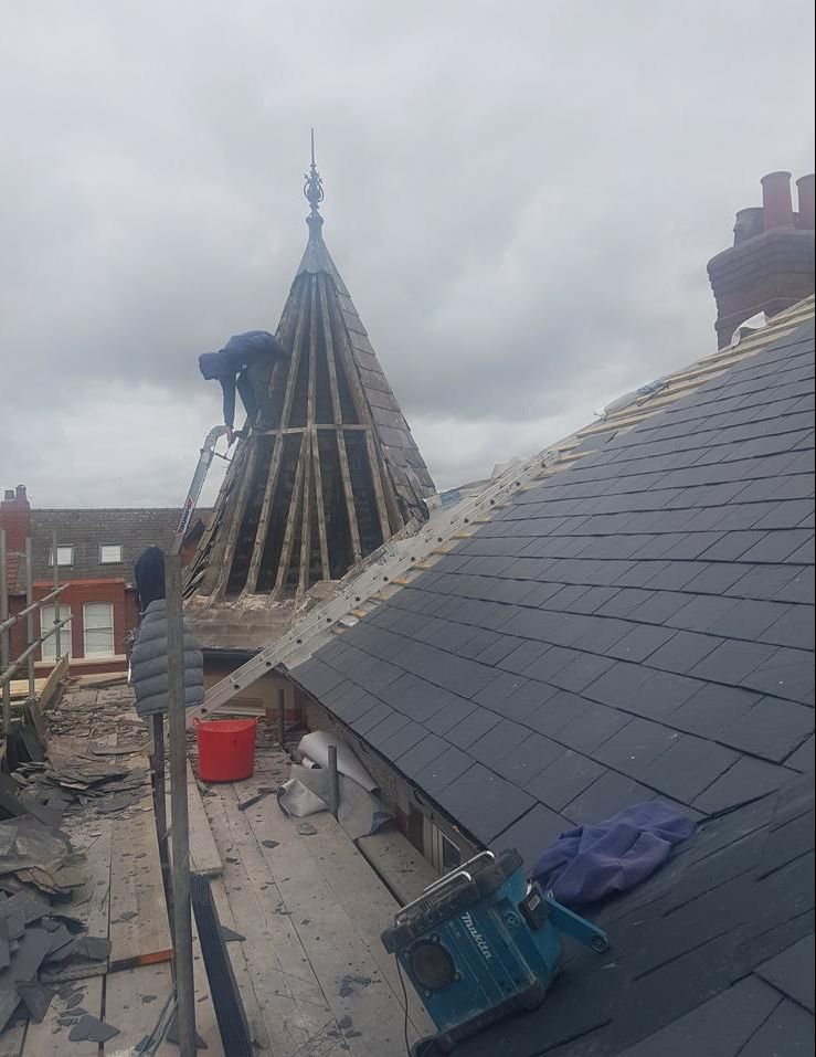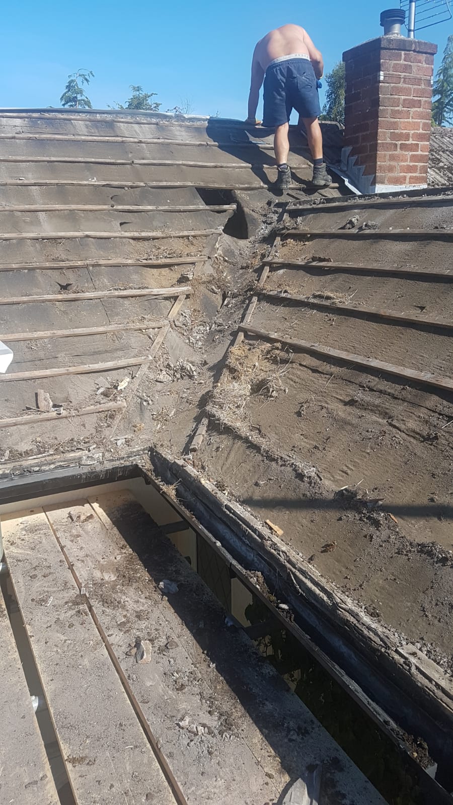 Old lead valley removed and a new maintenance-free dry valley system supplied and fitted with felt and batten replacement on the main roof.
