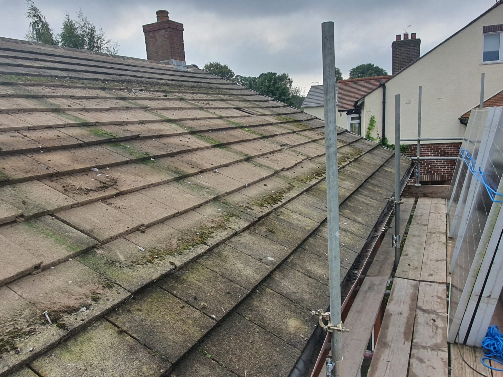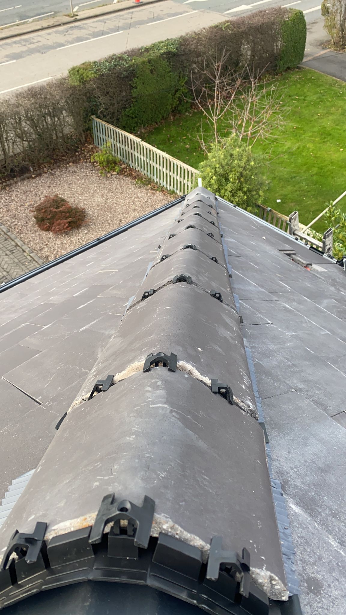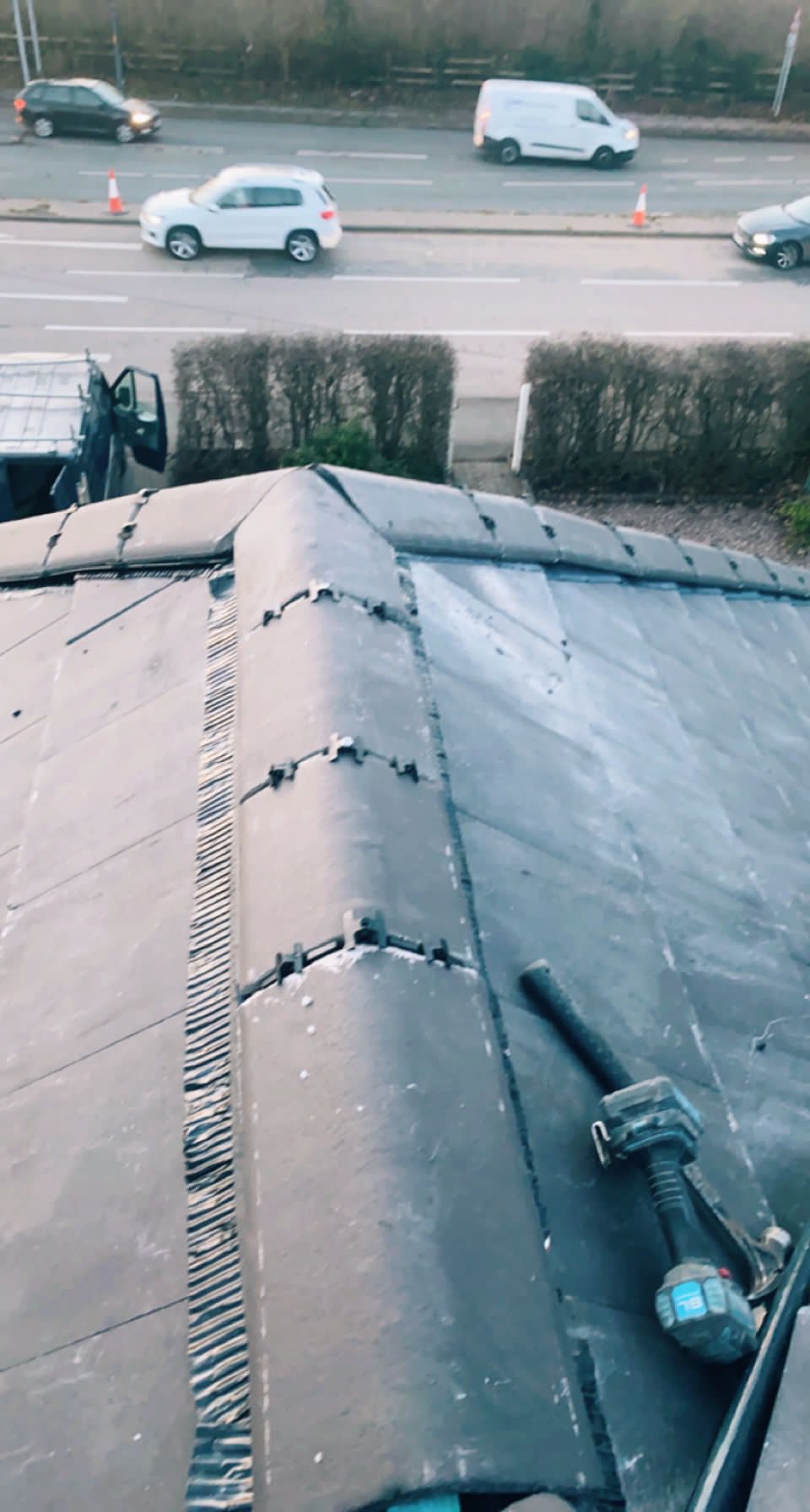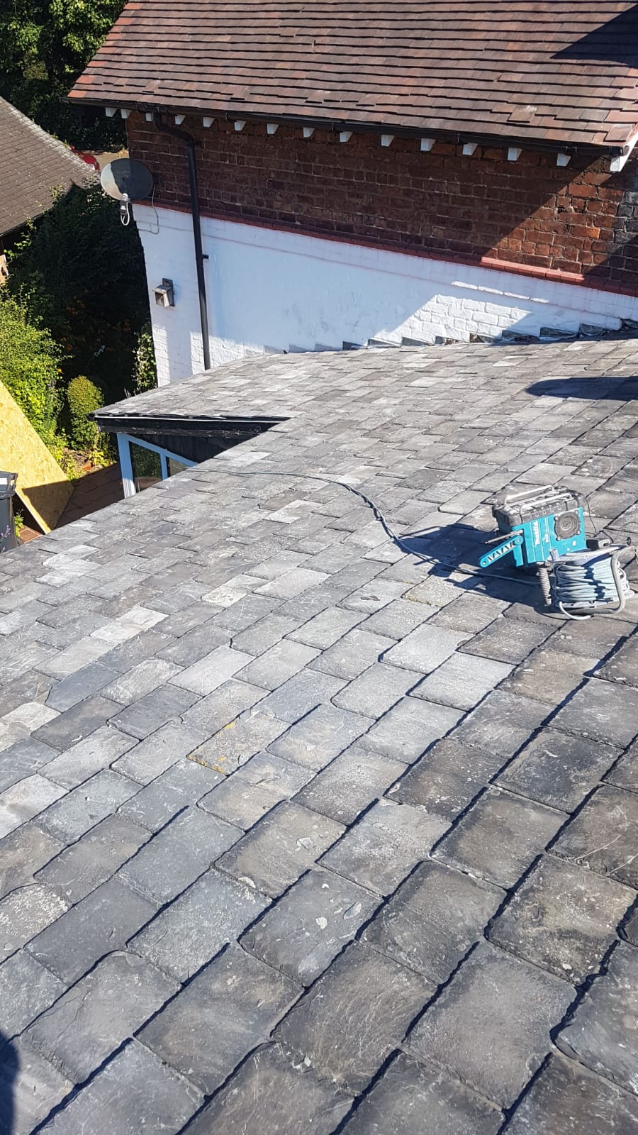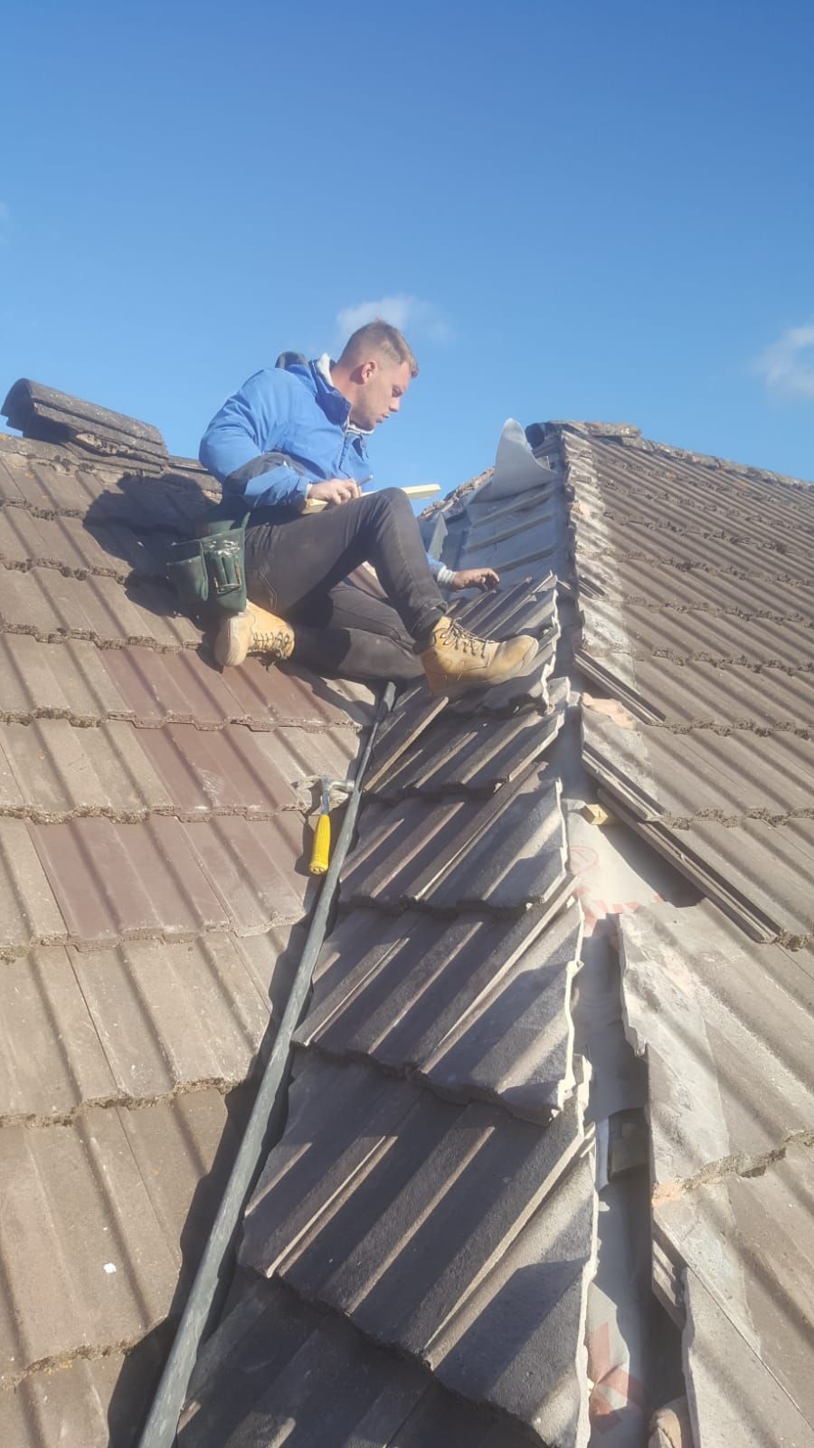 Old lead valley removed and a new maintenance-free dry valley system supplied and fitted with felt and batten replacement on the main roof.