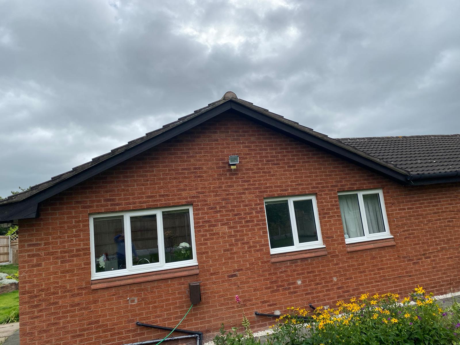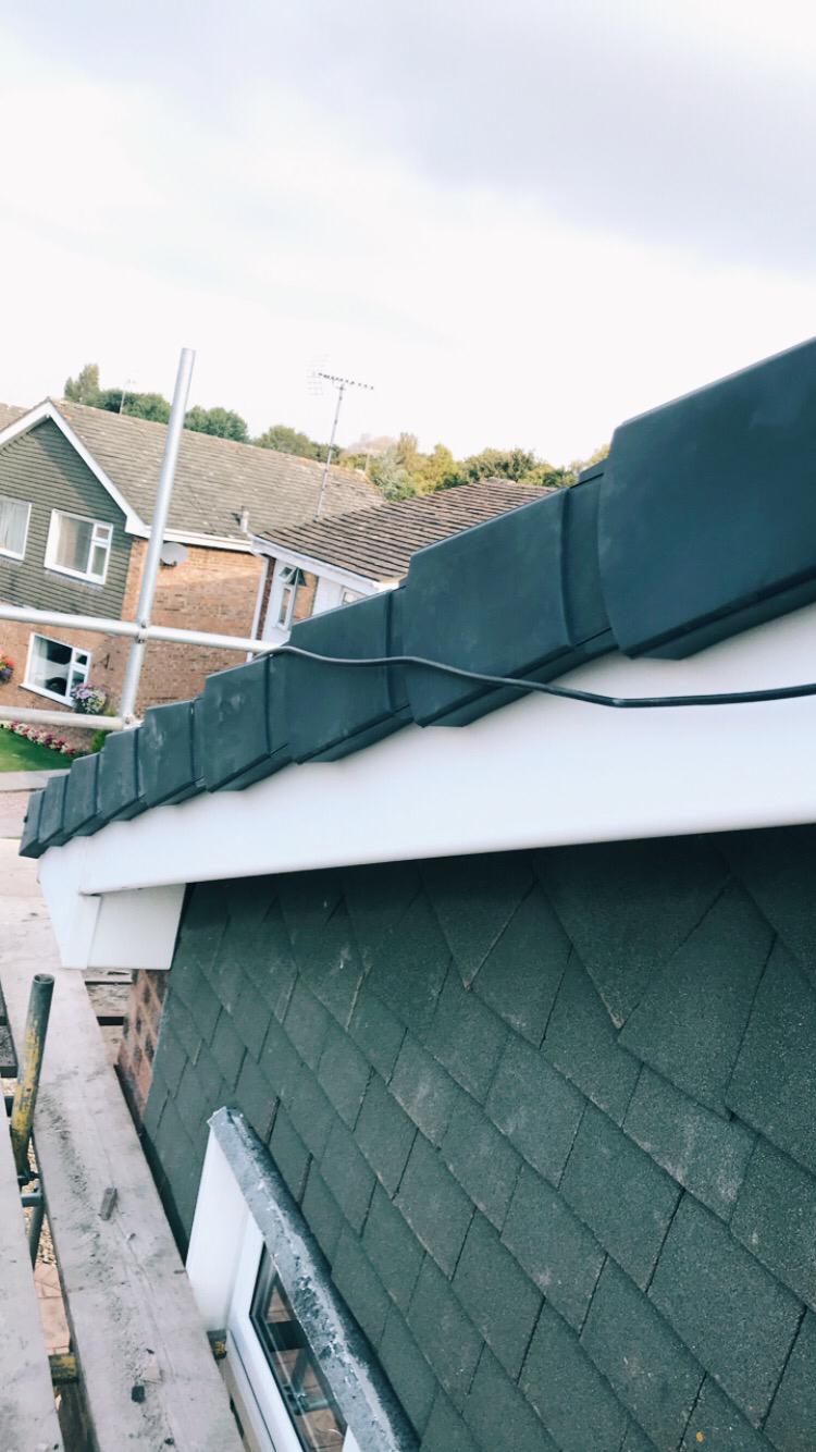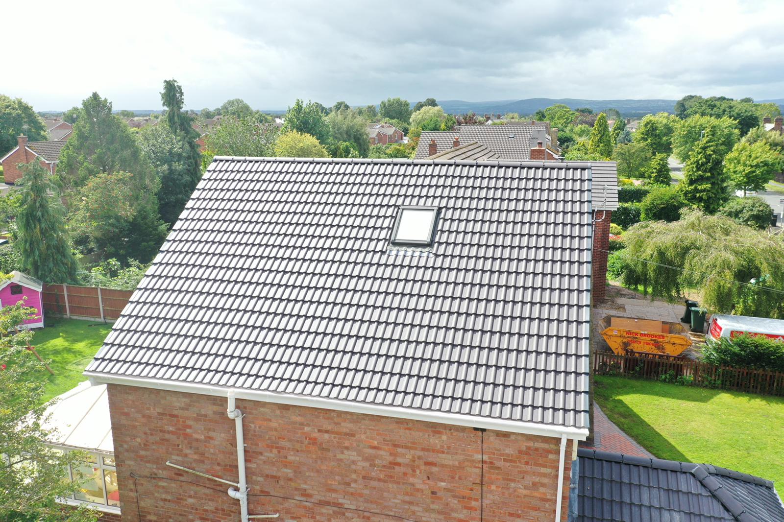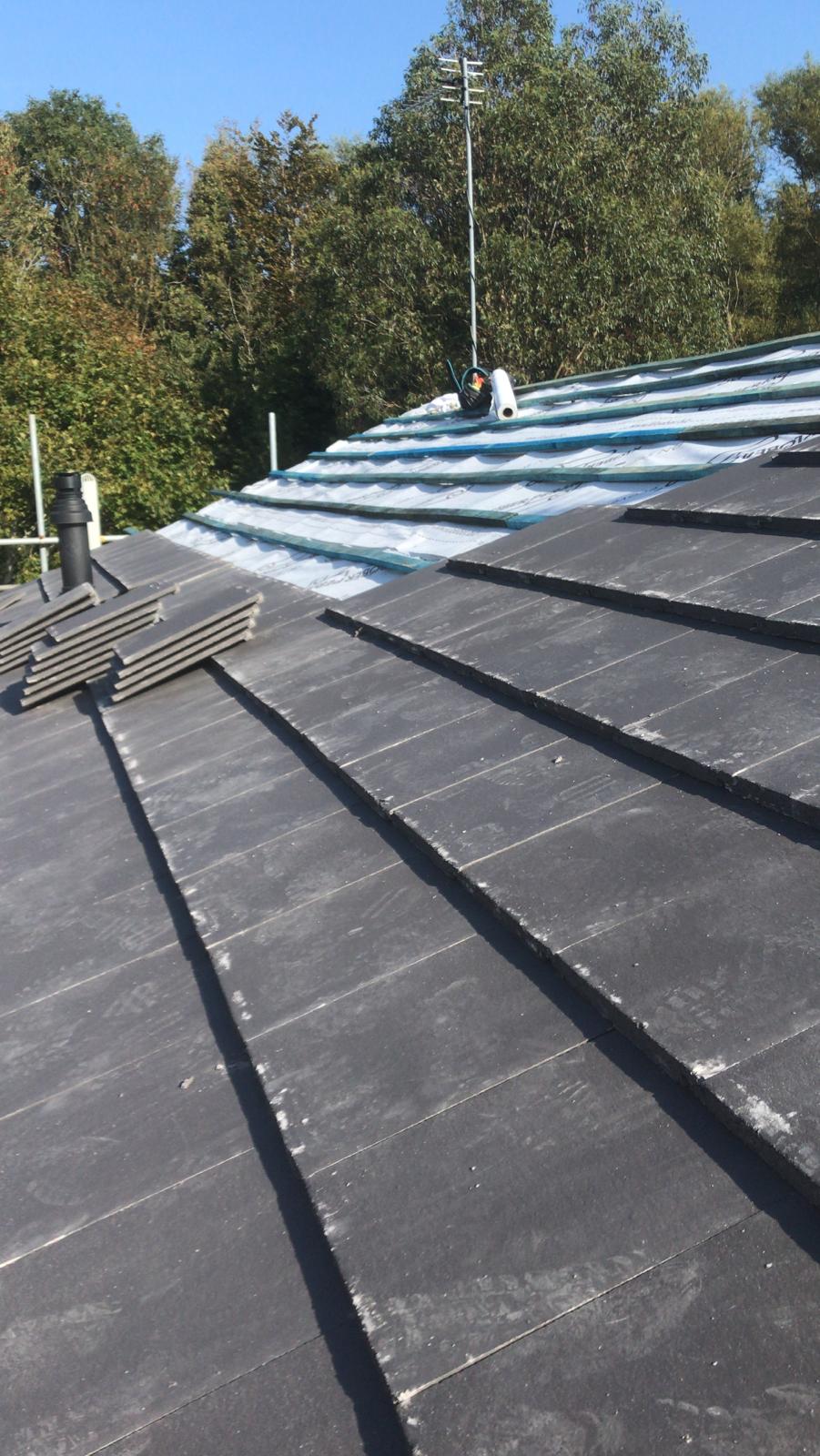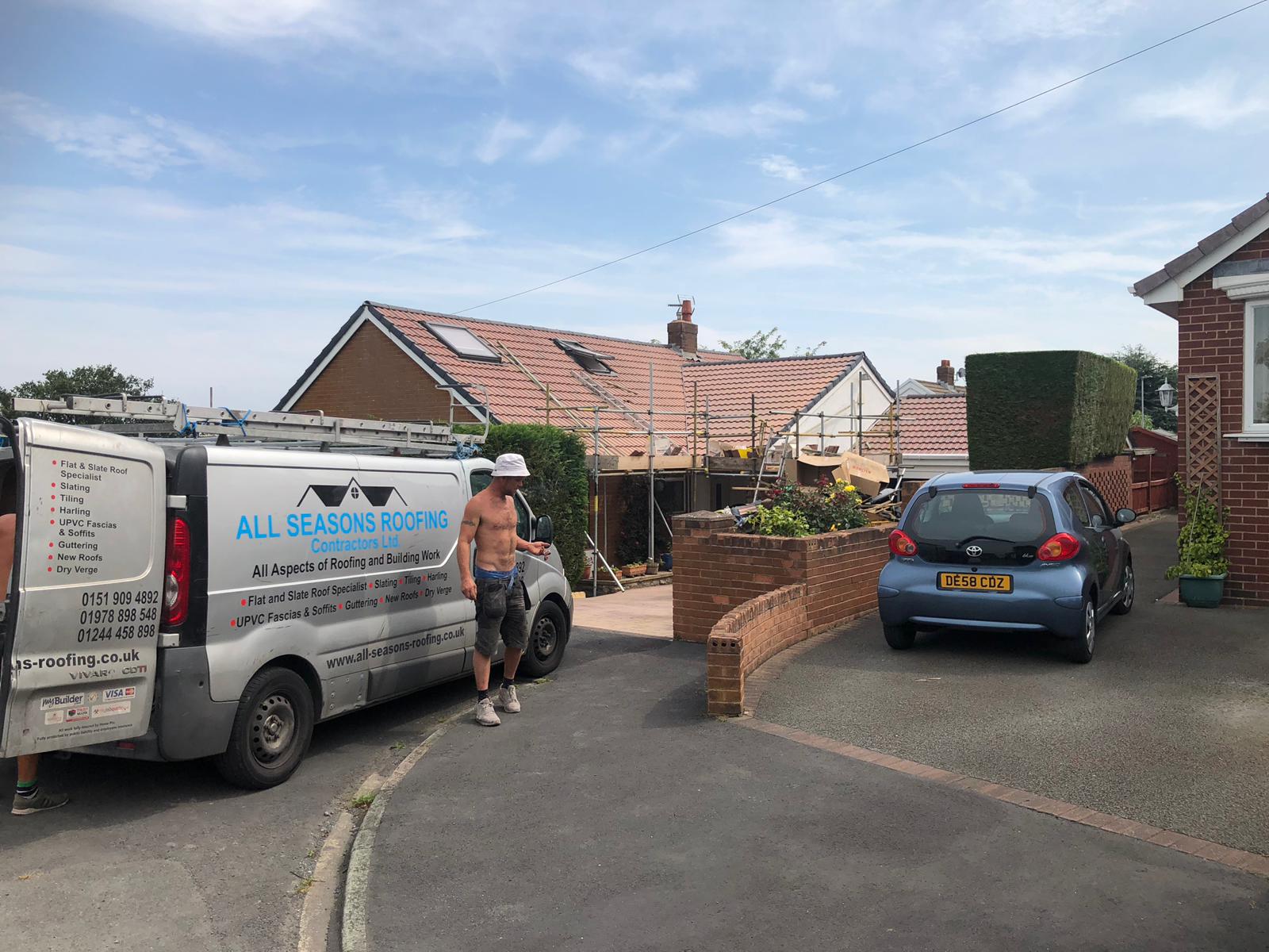 Here underway at All Seasons Roofing Contractors Ltd we have a complete new tile roof. Once the existing roof is completely stripped it will be fitted with all new breathable roofing membrane, all new roofing battens, and all new smooth grey tile, and all new matching ridges. New ridges will be fitted with a new dry ridge system. Along with that we are also fitting all new gable end timbers, all new UPVC fascia finished off with all new UPVC dry verge on the gable ends. Remember all our new roofs come with a 25 year guarantee and all UPVC work comes with a 10 year guarantee.