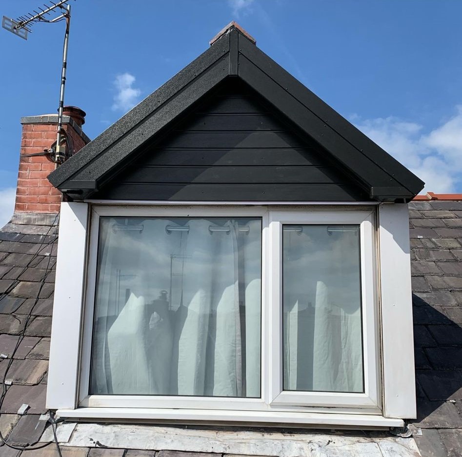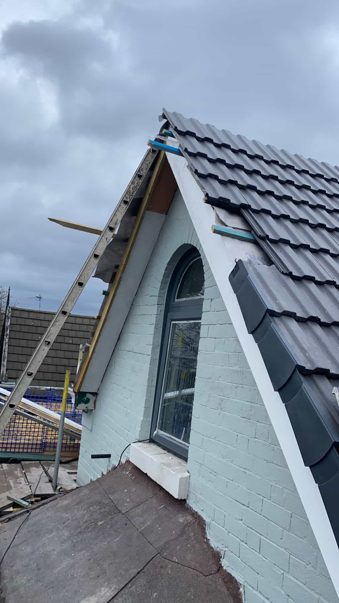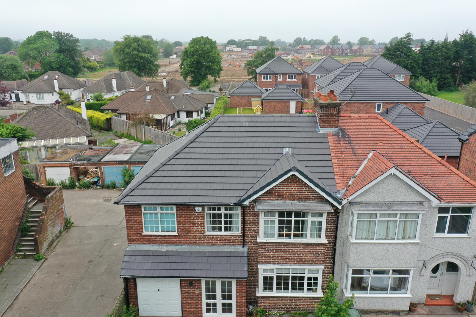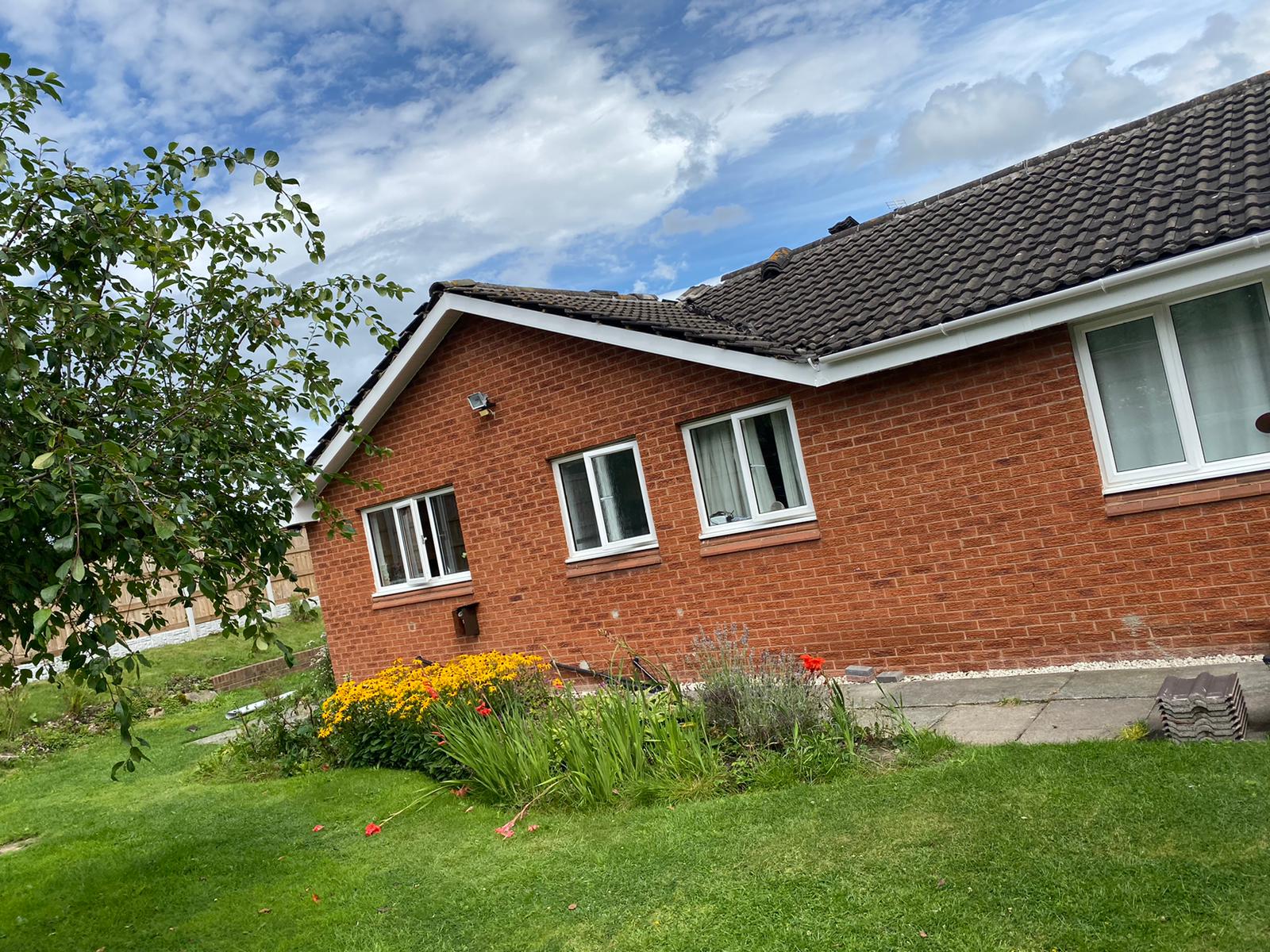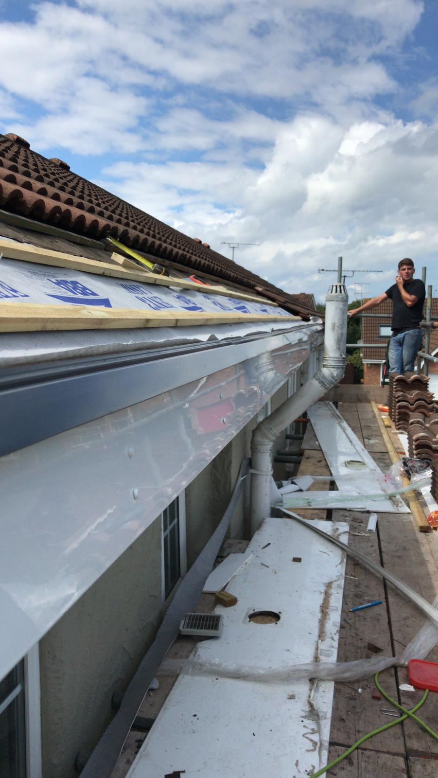 Here underway at All Seasons Roofing Contractors Ltd we have a complete new tile roof. Once the existing roof is completely stripped it will be fitted with all new breathable roofing membrane, all new roofing battens, and all new smooth grey tile, and all new matching ridges. New ridges will be fitted with a new dry ridge system. Along with that we are also fitting all new gable end timbers, all new UPVC fascia finished off with all new UPVC dry verge on the gable ends. Remember all our new roofs come with a 25 year guarantee and all UPVC work comes with a 10 year guarantee.