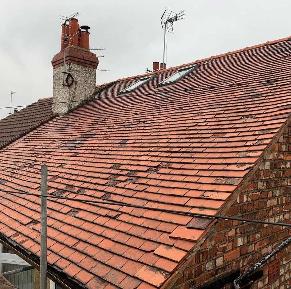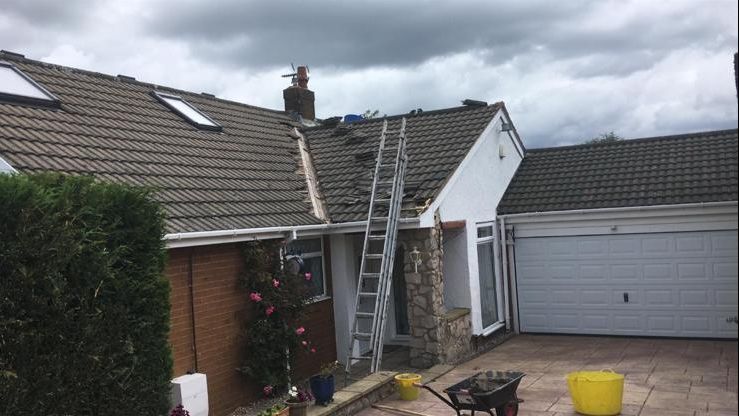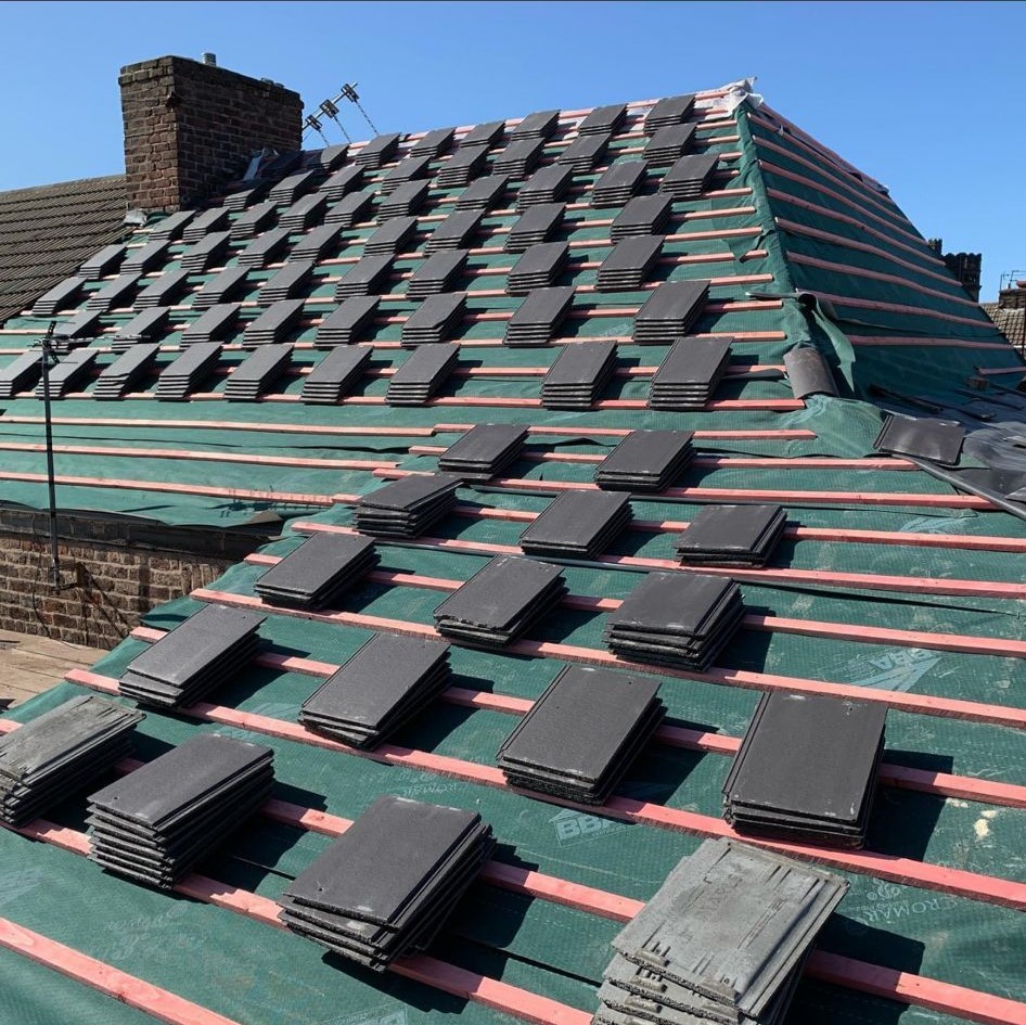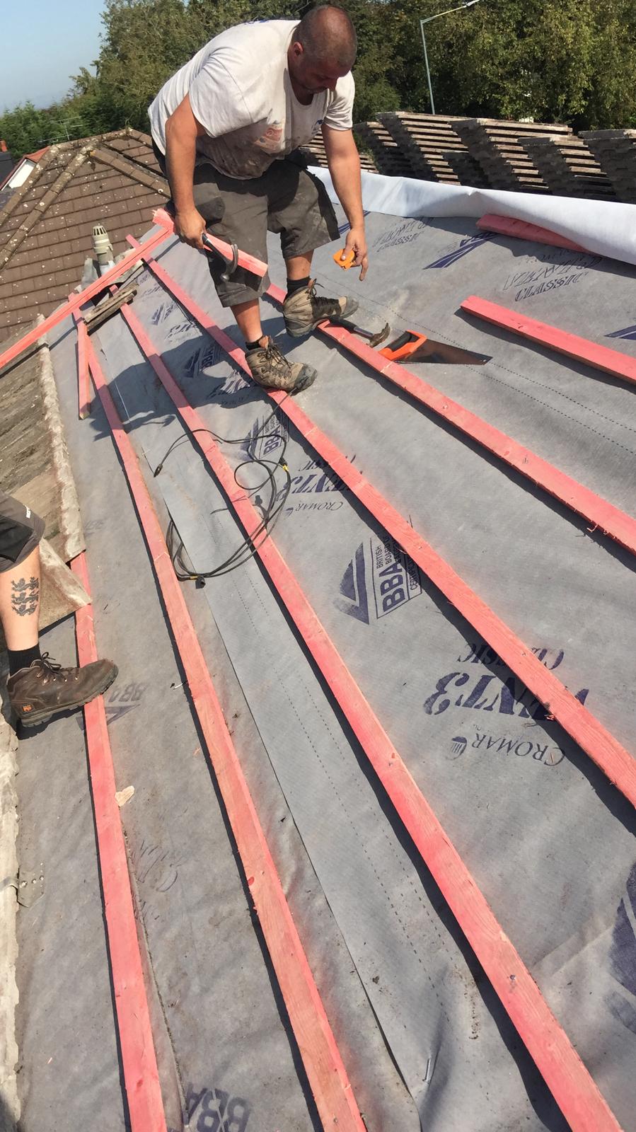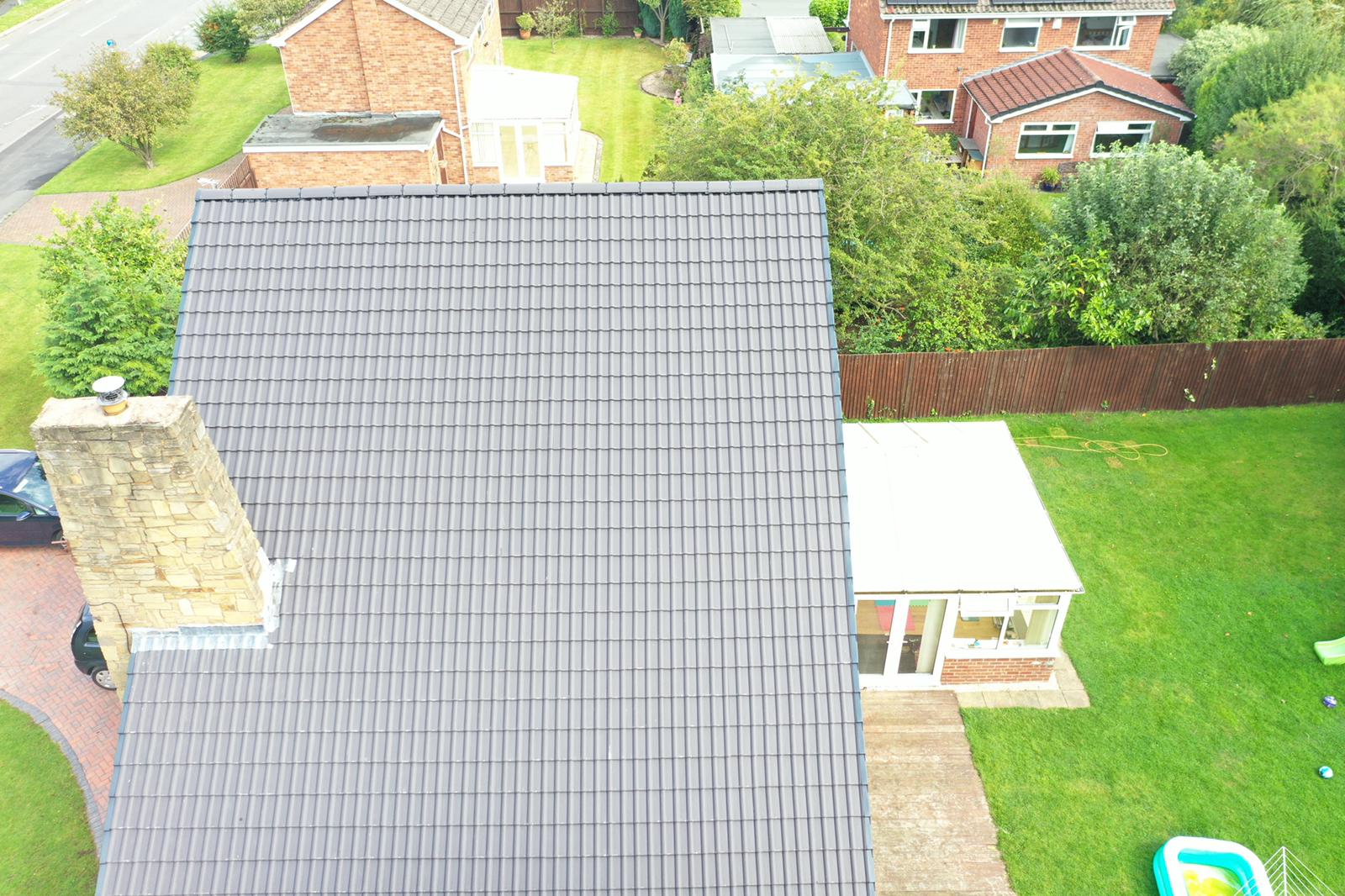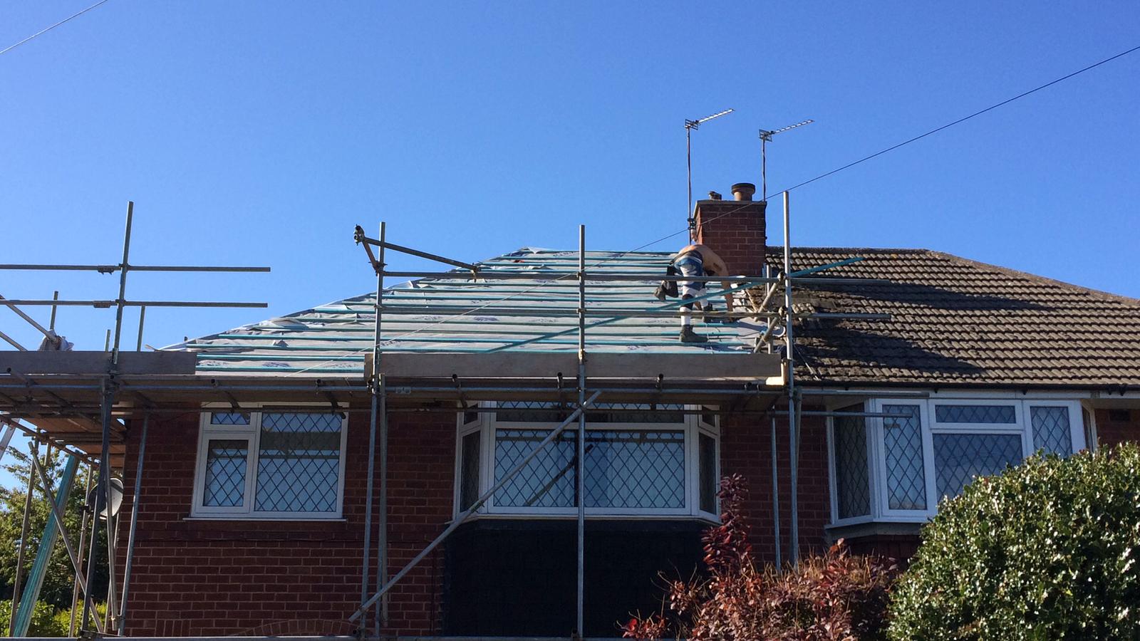 Here underway at All Seasons Roofing Contractors Ltd we have a complete new tile roof. Once the existing roof is completely stripped it will be fitted with all new breathable roofing membrane, all new roofing battens, and all new smooth grey tile, and all new matching ridges. New ridges will be fitted with a new dry ridge system. Along with that we are also fitting all new gable end timbers, all new UPVC fascia finished off with all new UPVC dry verge on the gable ends. Remember all our new roofs come with a 25 year guarantee and all UPVC work comes with a 10 year guarantee.