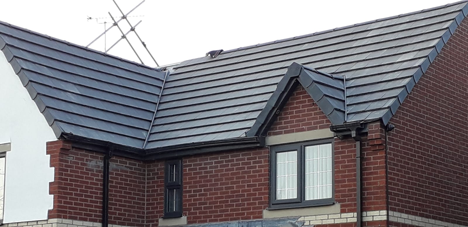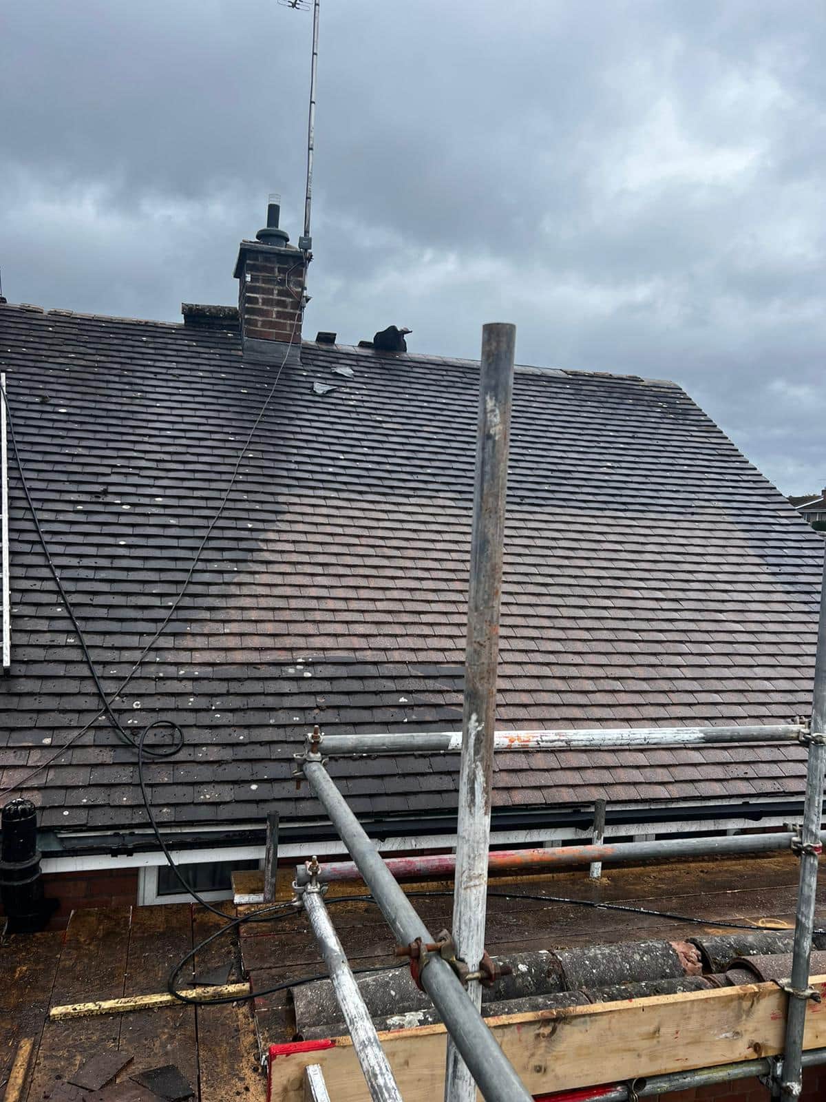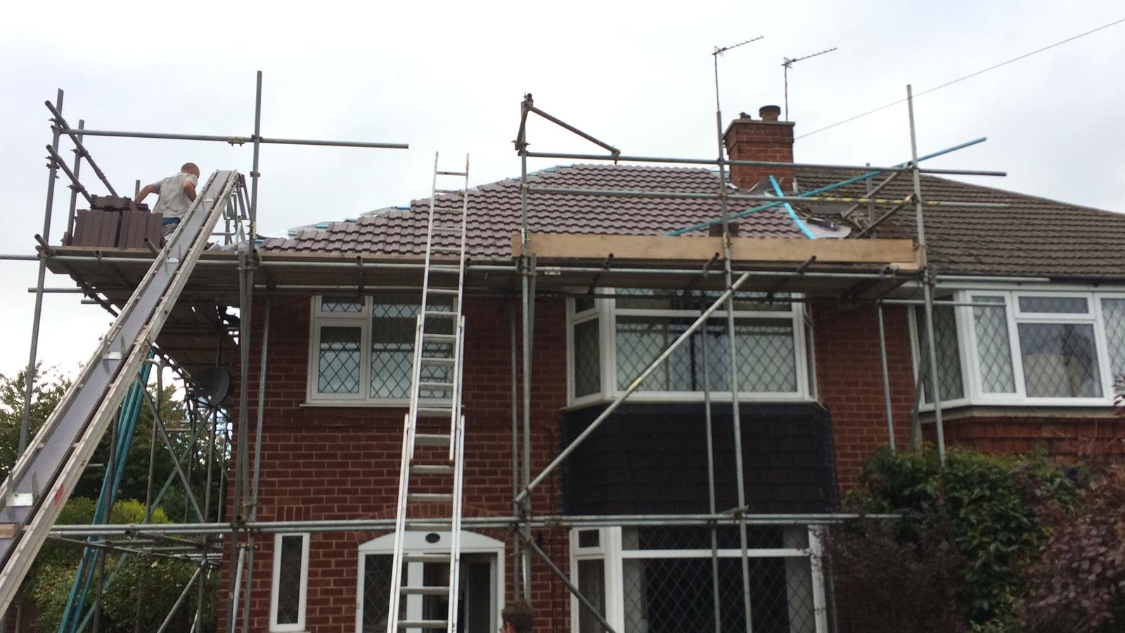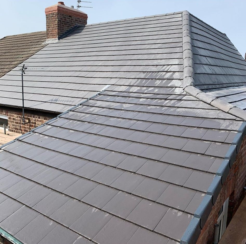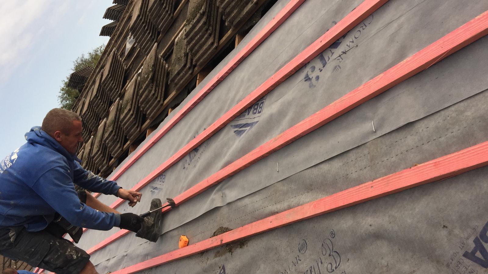 Here underway at All Seasons Roofing Contractors Ltd we have a complete new tile roof. Once the existing roof is completely stripped it will be fitted with all new breathable roofing membrane, all new roofing battens, and all new smooth grey tile, and all new matching ridges. New ridges will be fitted with a new dry ridge system. Along with that we are also fitting all new gable end timbers, all new UPVC fascia finished off with all new UPVC dry verge on the gable ends. Remember all our new roofs come with a 25 year guarantee and all UPVC work comes with a 10 year guarantee.