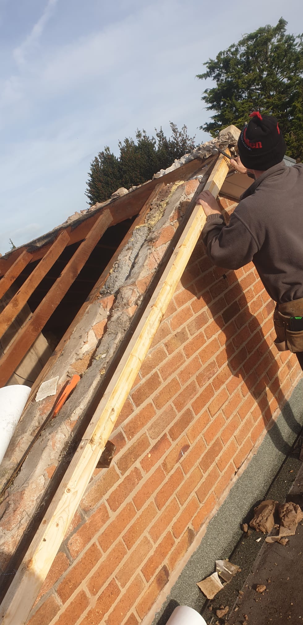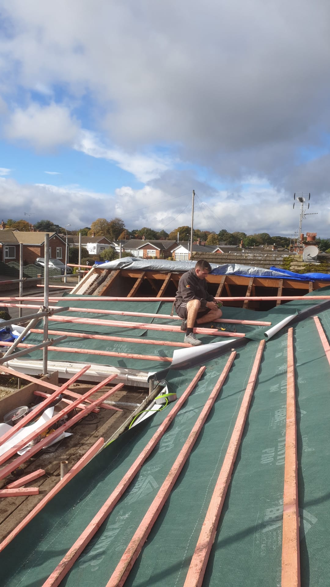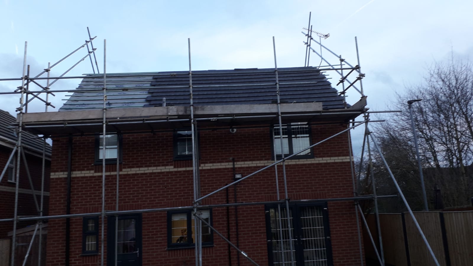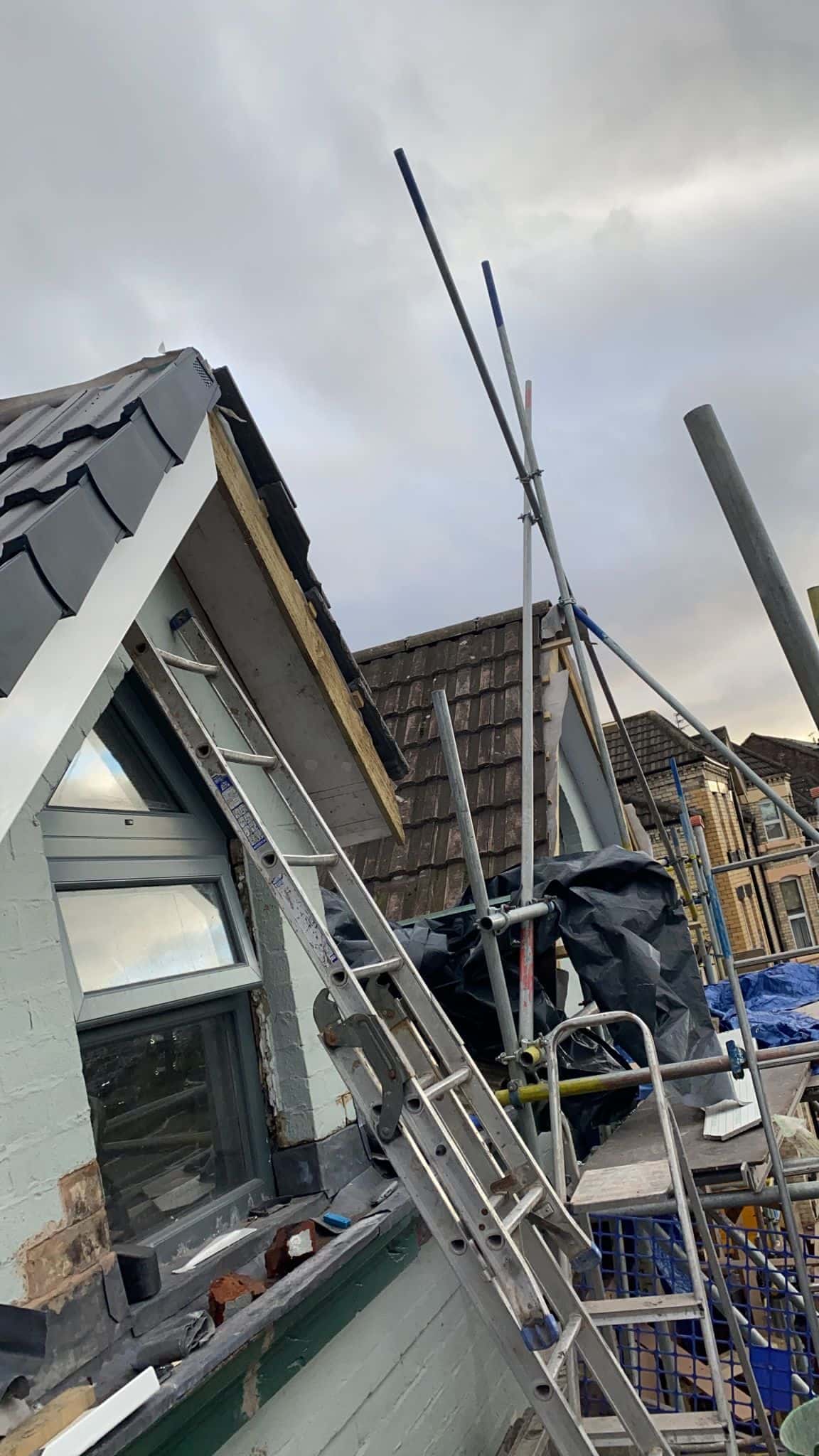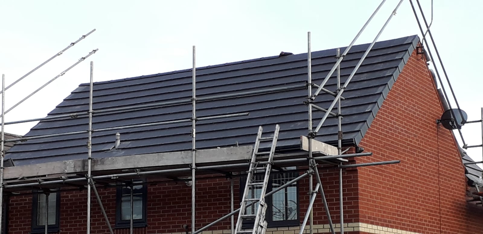 Here underway at All Seasons Roofing Contractors Ltd we have a complete new tile roof. Once the existing roof is completely stripped it will be fitted with all new breathable roofing membrane, all new roofing battens, and all new smooth grey tile, and all new matching ridges. New ridges will be fitted with a new dry ridge system. Along with that we are also fitting all new gable end timbers, all new UPVC fascia finished off with all new UPVC dry verge on the gable ends. Remember all our new roofs come with a 25 year guarantee and all UPVC work comes with a 10 year guarantee.