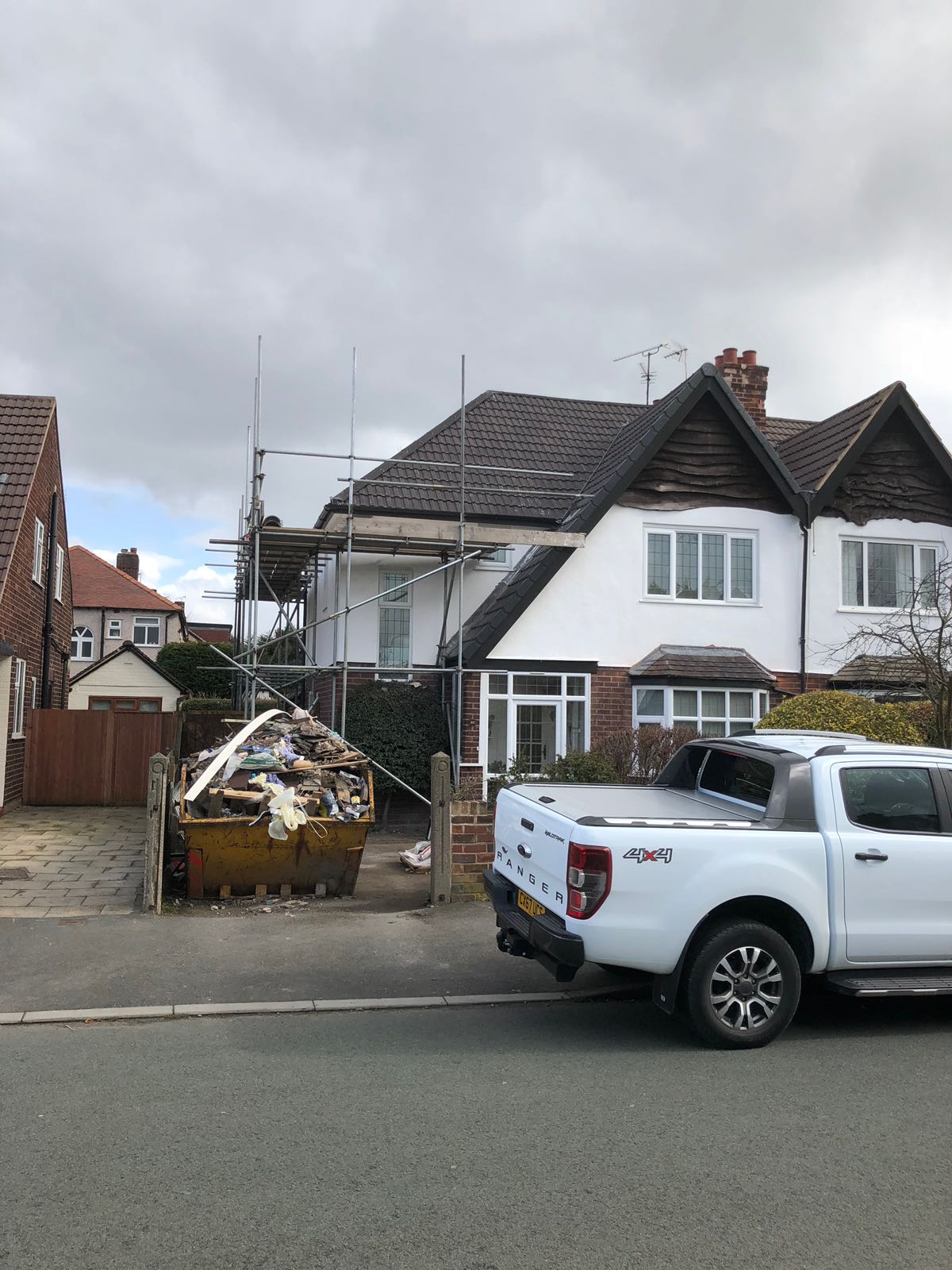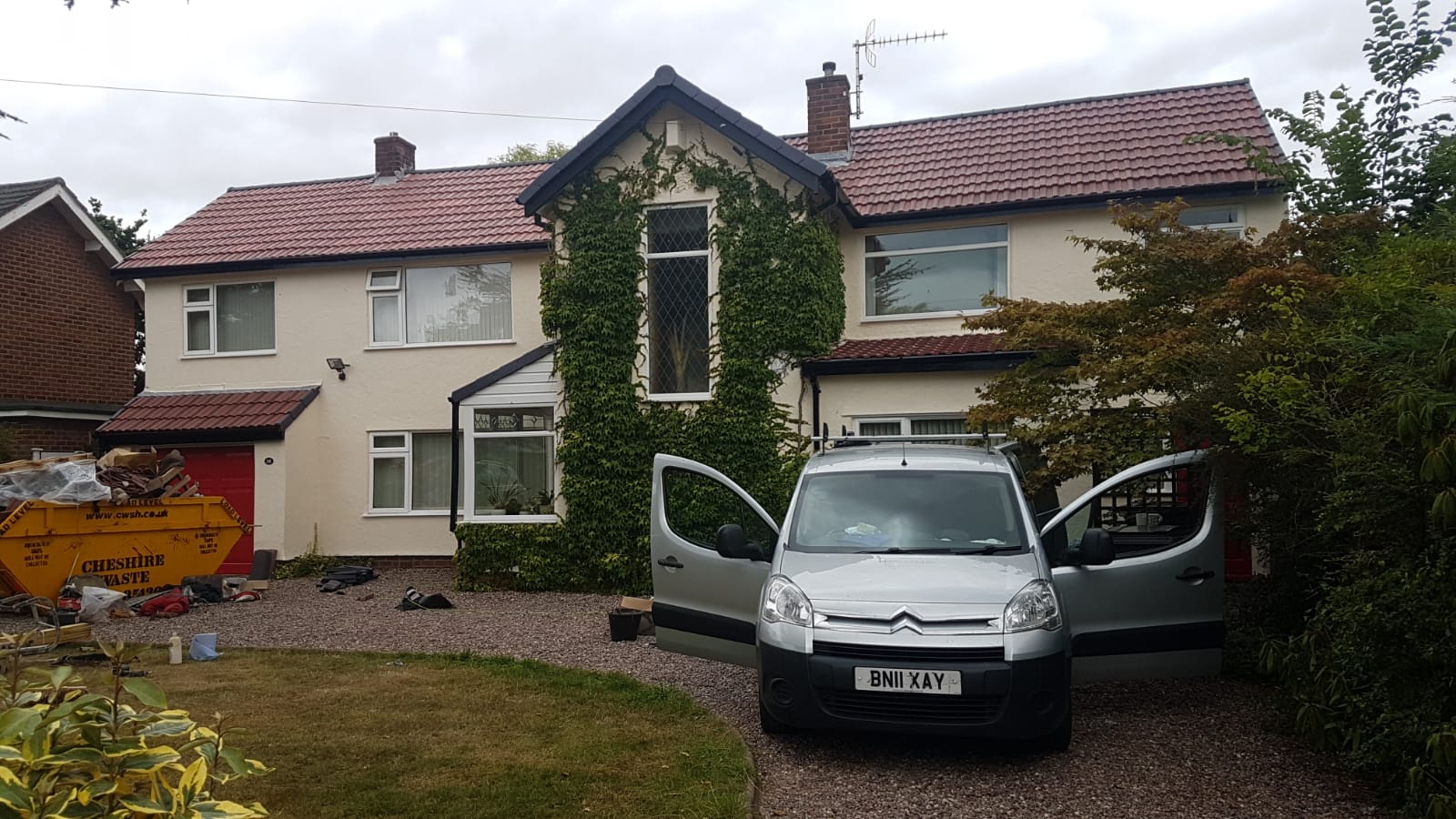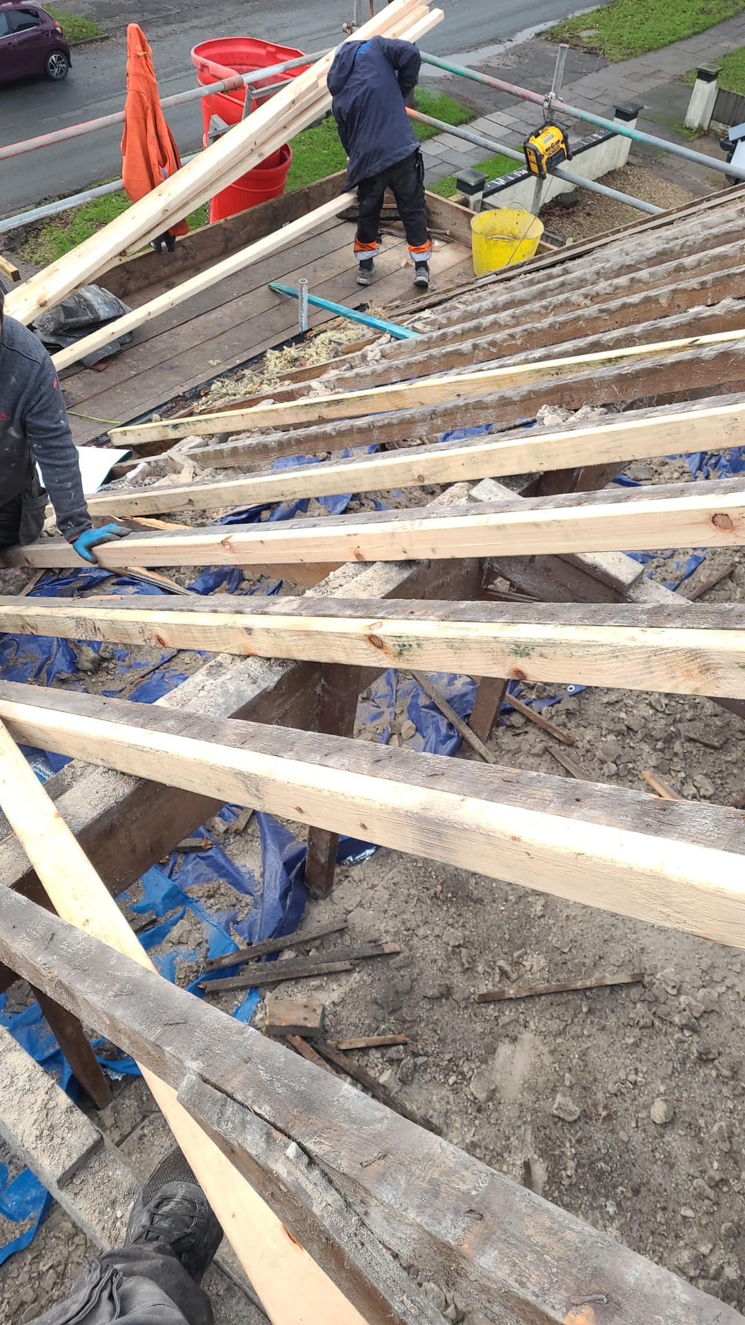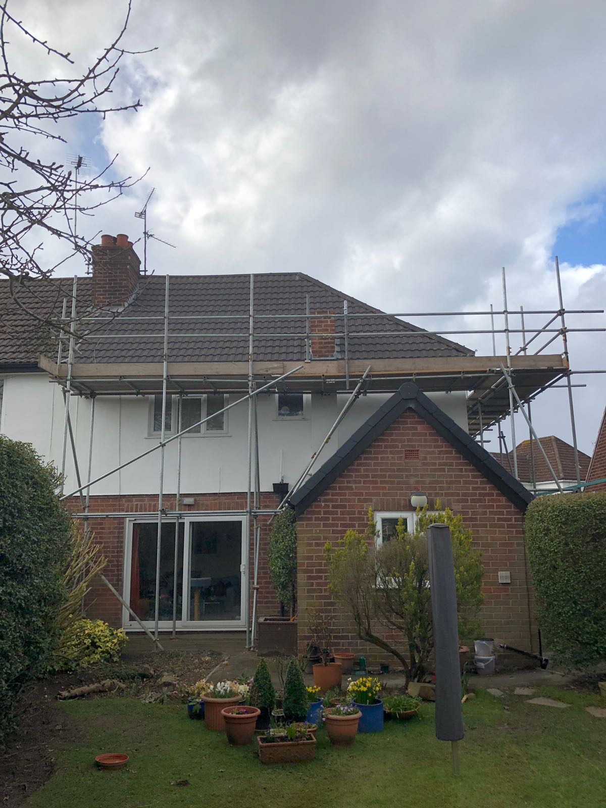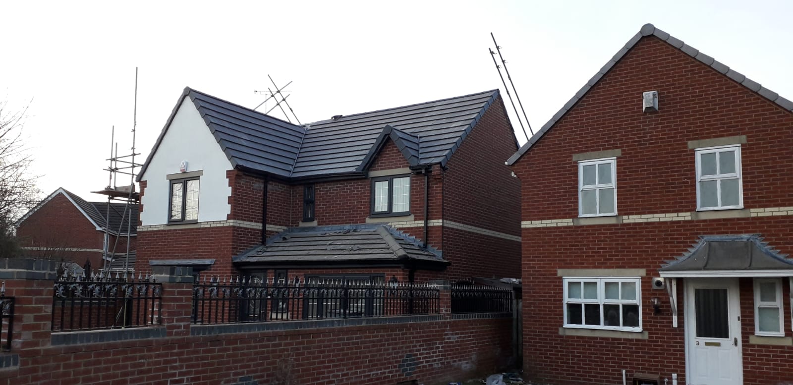 Here underway at All Seasons Roofing Contractors Ltd we have a complete new tile roof. Once the existing roof is completely stripped it will be fitted with all new breathable roofing membrane, all new roofing battens, and all new smooth grey tile, and all new matching ridges. New ridges will be fitted with a new dry ridge system. Along with that we are also fitting all new gable end timbers, all new UPVC fascia finished off with all new UPVC dry verge on the gable ends. Remember all our new roofs come with a 25 year guarantee and all UPVC work comes with a 10 year guarantee.