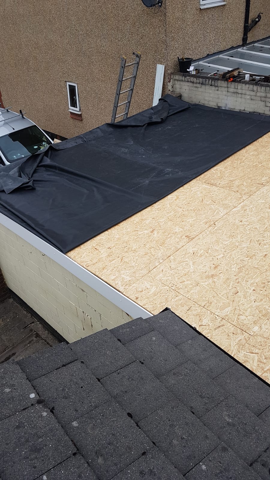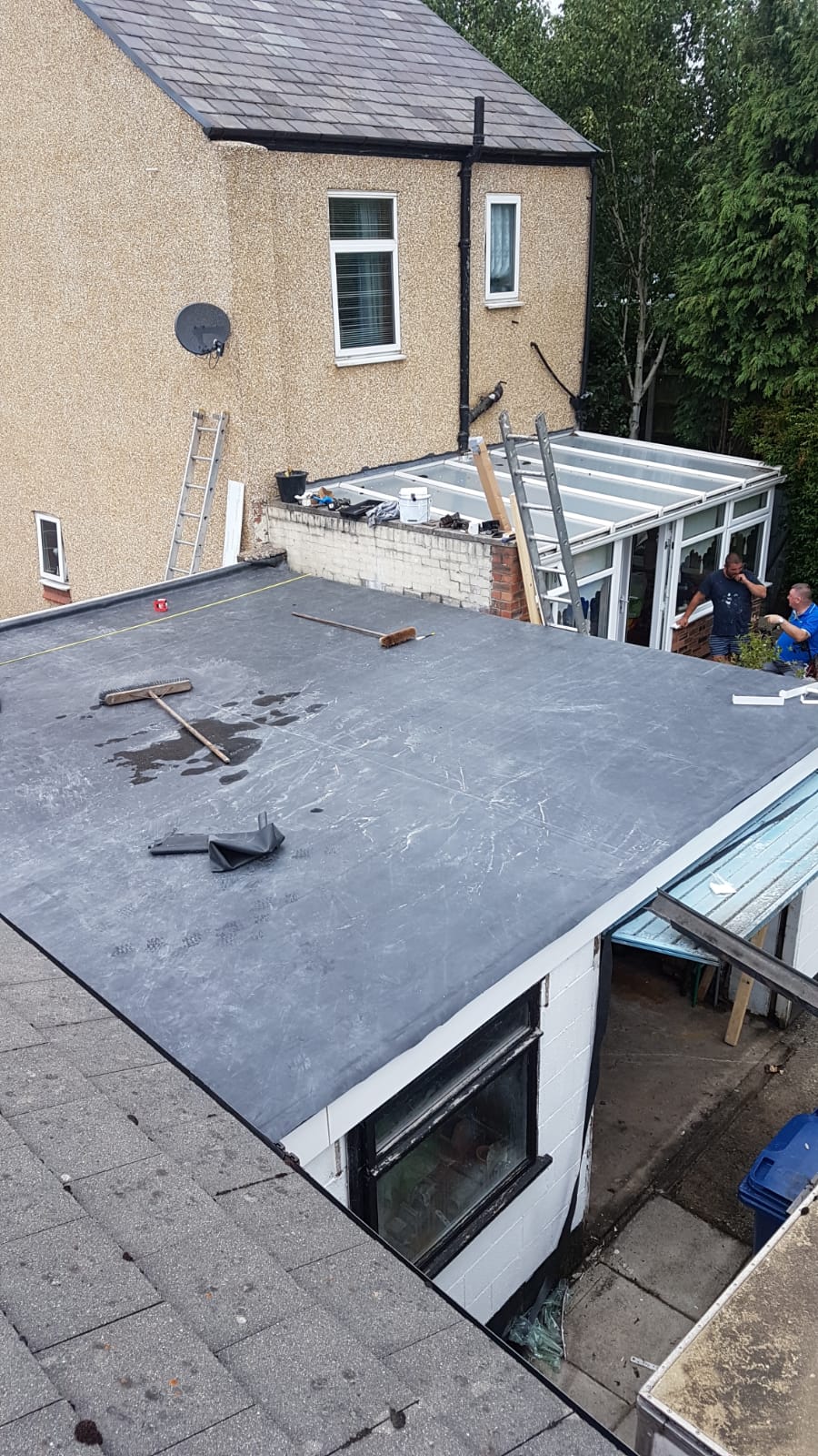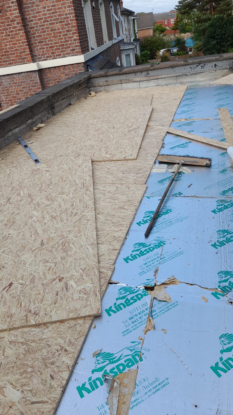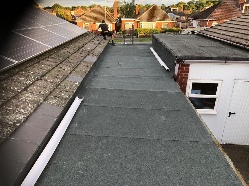 Here at All Seasons Roofing we have just completed a warm roof. With 2 separate layers of 18mm OSB boards separated with 150mm of Kingspan insulation. Then fitted with a new EPDM Rubbercover rubber roof. Please remember all our new rubber roofs come with a full 25 year watertight and maintenance free guarantee.