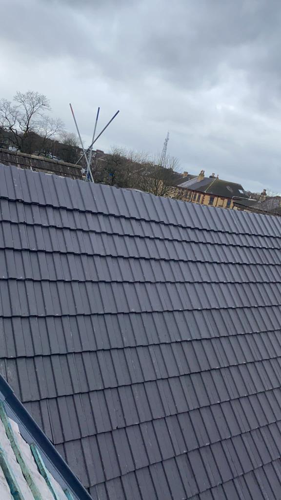 Here is a complete new tile roof we have recently fitted after removing a slate roof in a church in Queensferry, along with all new fascias, soffits and guttering. Remember, all of our new roofs come with a 25 year written guarantee.